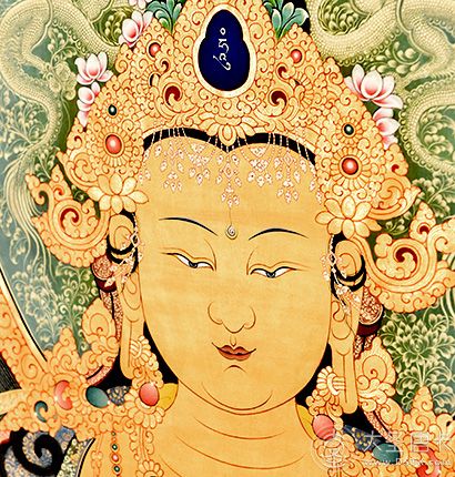 | 唐卡“師傅”開臉,筆路穩重流暢。體現完美天人相,可見佛菩薩慈眉善目,賦予唐卡畫像生的靈氣。 | 細節決定品質,點睛之筆不到位影響整體美觀,五官比例不協調,面目呆板,缺乏靈氣。 |