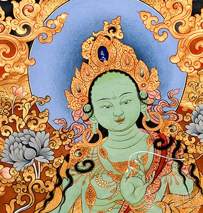 綠度母是二十一度母的總集,觀音菩薩的化身,她能救八種苦難,本尊心咒具足一切息增懷誅之功用,消除一切眾生的煩惱痛苦、滿足一切眾生愿求。