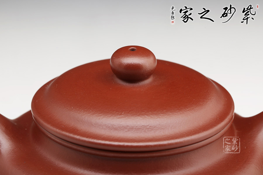 特點:質(zhì)感綿密、緊實細(xì)緻,持之扎實沉重、紅潤豔麗,泥中極品,無以倫比;泥胚含少許原礦顆粒,沖淋熱水后色變極大,呈紅中帶紫,養(yǎng)壺易現(xiàn)“包漿”之美。