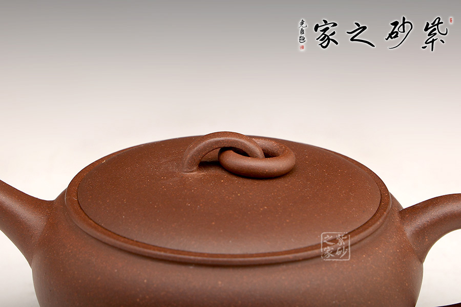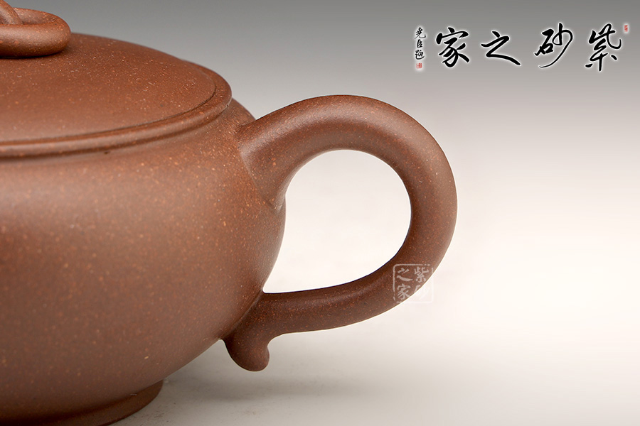 壺體飽滿圓融,線條潤澤流暢,圓嵌蓋闊朗大氣;直嘴出水流利、飛把線條婉轉(zhuǎn),曲伸自如; 蓋紐飾環(huán),玉魚(小夔龍造型)拱形,動感十足。整壺韻味雋永,格調(diào)高雅,容量200cc,小巧圓潤,把玩得當。