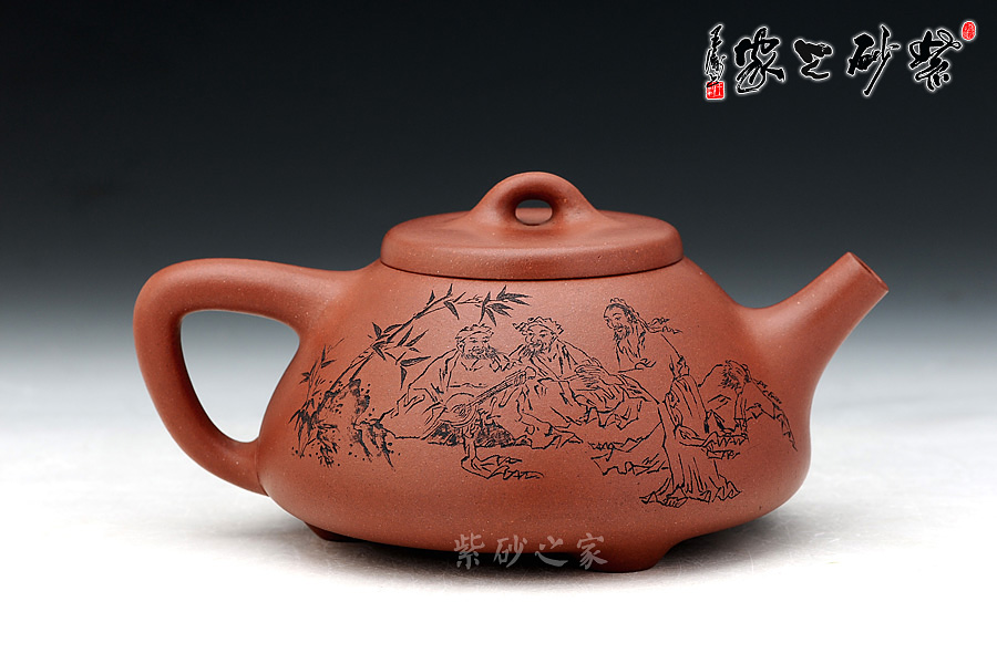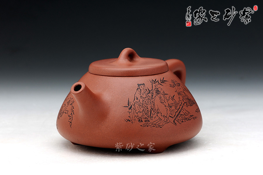 子冶石瓢為歷史名壺,為幾代制壺藝人所青睞仿制,然大凡出息名家在仿制此壺時,都有自己的理解,故風格有異。細細品味此款莊青老師的作品,便覺真正達到了子冶石瓢的精髓,正所謂是:在造型上此壺去掉把、去掉嘴,就是三角形、呈金字塔;單去把或單去嘴是平形四邊形。此壺看著精骨、清瘦,字畫布局有條理,清晰有致,自然看了舒暢,大有不為五斗米折腰的窮書生精神。故多為歷代文人墨客所喜愛……