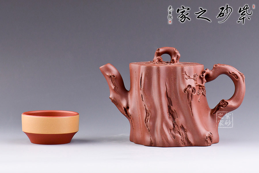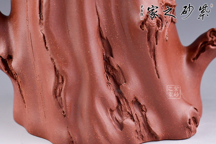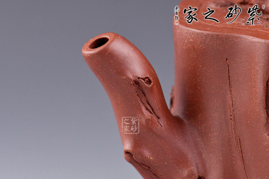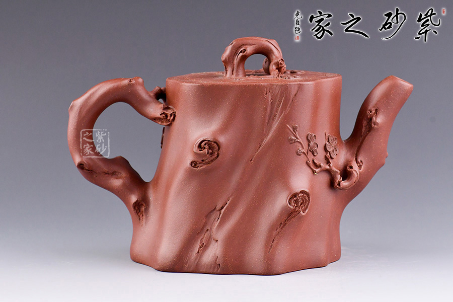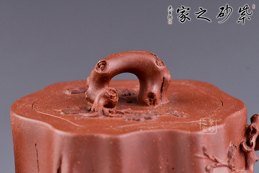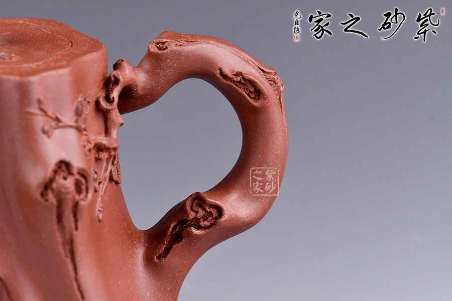從整體看此壺成了一件強(qiáng)有力的紫砂雕塑作品,以梅花為主題,壺身、流、把、蓋全部是用極富生態(tài)的梅樁、樹皮及纏枝組成,形態(tài)自然而富含力度,壺嘴壺把為梅樁衍生出的枝干,壺把梅花胥出,伸展自然,有如自然長成,仿生性極強(qiáng),充滿了生命的活力;壺把和壺鈕處胥出梅花,疏影橫斜、暗香動(dòng)人,壺身融圓、壺足挺立,壺蓋穹窿,整體制作到位,此壺做工精細(xì),氣度非凡,實(shí)用性觀賞性都很好,是把玩收藏之佳作!