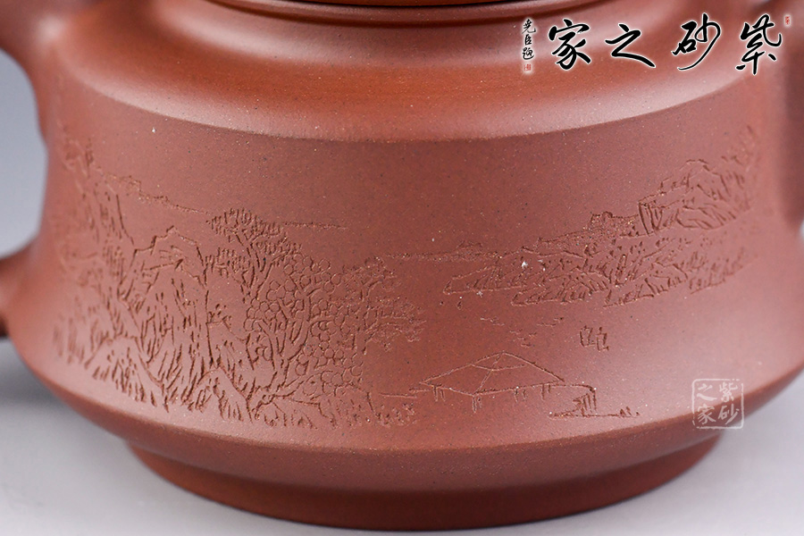 此壺為父子合作款,天樂刻繪,天樂為王福君之子。中國工藝美術(shù)大師譚泉海的入室弟子,得師傅真?zhèn)鳌T谧仙皹I(yè)內(nèi)大型比賽中獲獎(jiǎng),作為陶刻界新生力量的代表。