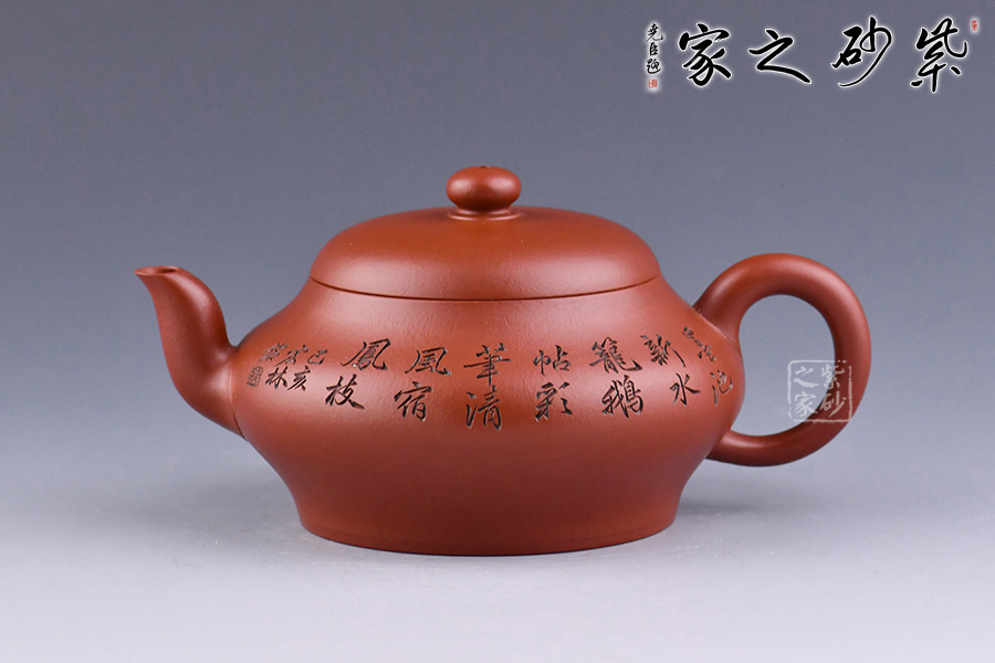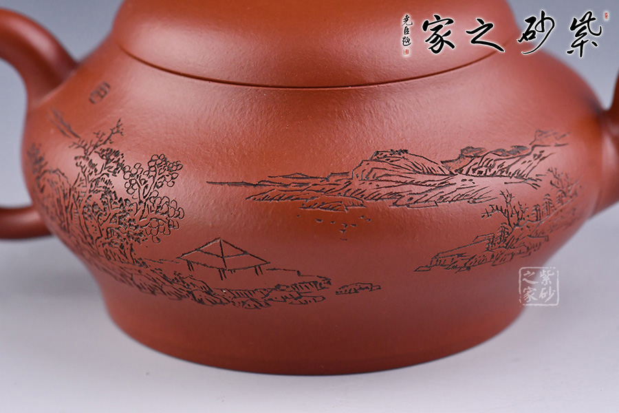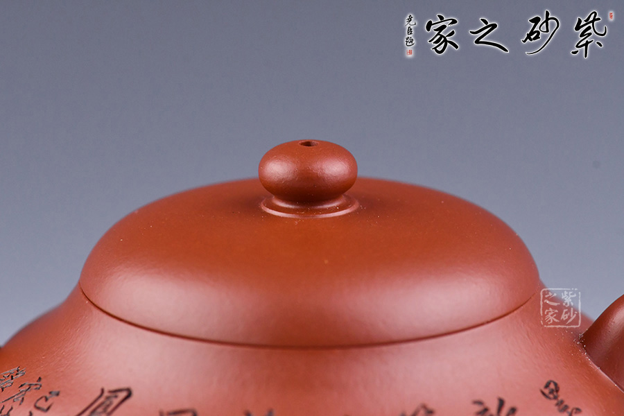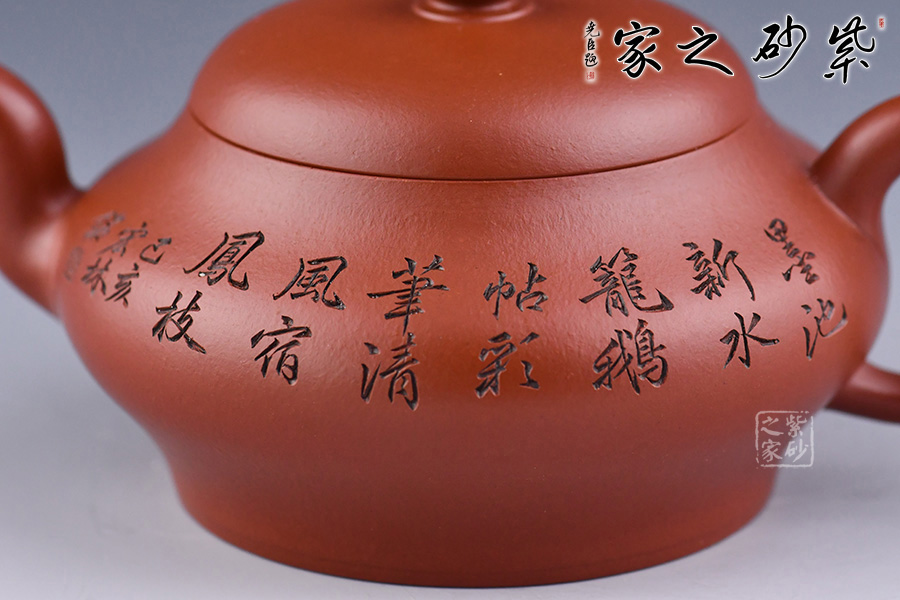 特點:質(zhì)感綿密、緊實細緻,持之扎實沉重、紅潤豔麗,泥中極品,無以倫比;泥胚含少許原礦顆粒,沖淋熱水后色變極大,呈紅中帶紫,養(yǎng)壺易現(xiàn)“包漿”之美。