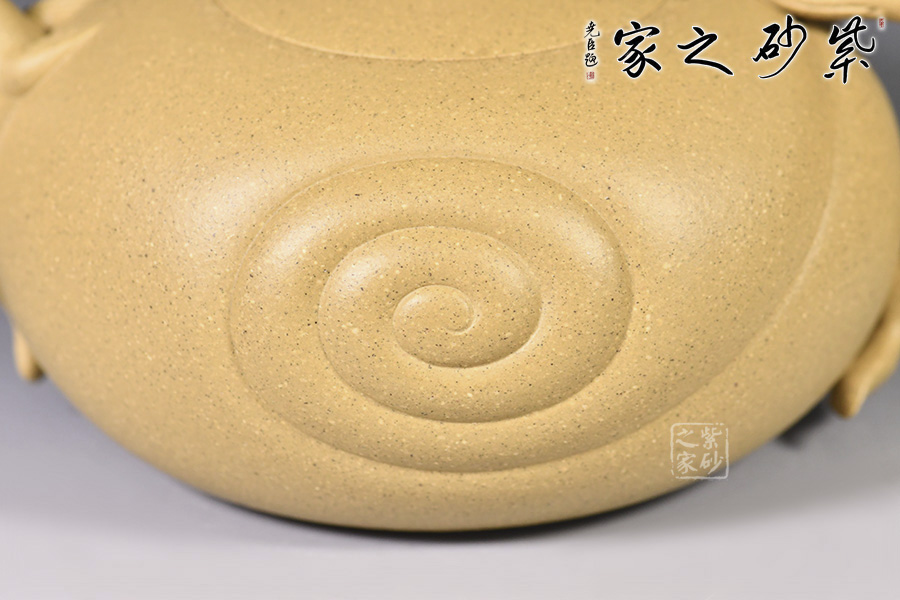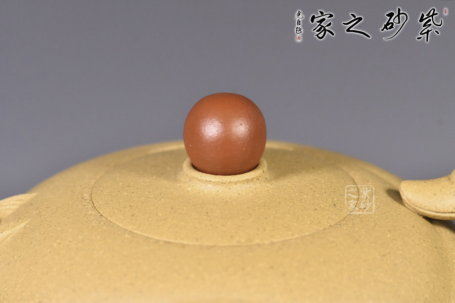 泥性:感甜嫩綿密,質(zhì)堅(jiān)而溫潤,呈近田黃色調(diào),為江蘇宜興趙莊山系朱泥礦~黃石黃之共生礦,經(jīng)挑揀練製而成,因含鐵量只達(dá)6%左右,致陶之后呈“金田黃色”。