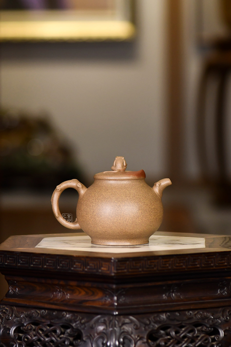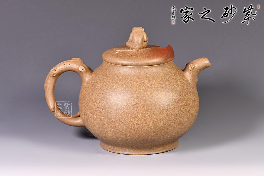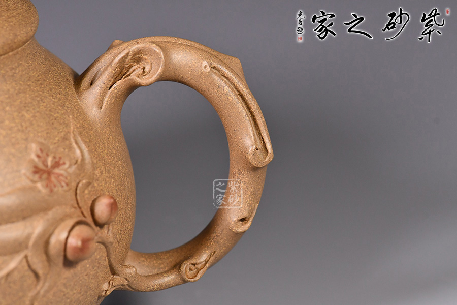 泥性:感甜嫩綿密,質(zhì)堅(jiān)而溫潤,呈近田黃色調(diào),為江蘇宜興趙莊山系朱泥礦~黃石黃之共生礦,經(jīng)挑揀練製而成,因含鐵量只達(dá)6%左右,致陶之后呈“金田黃色”。