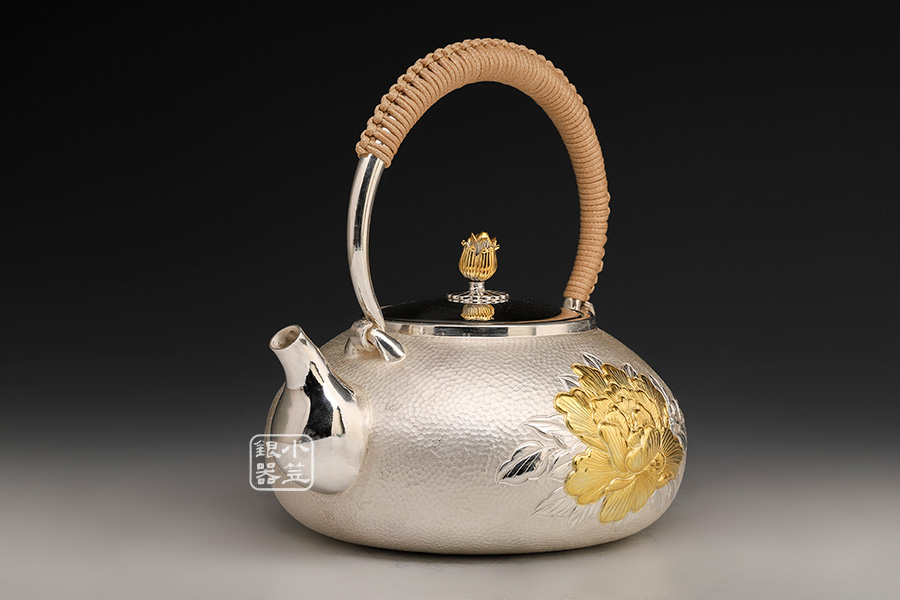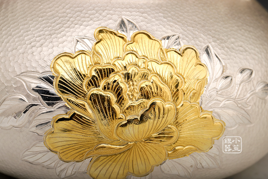 采用素面錘紋工藝,壺身鎏金牡丹,端麗嫵媚,雍容華貴,色、香、韻集美一身,“牡丹,花之富貴者也”。