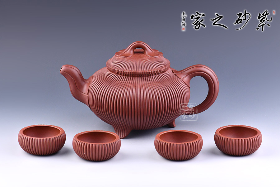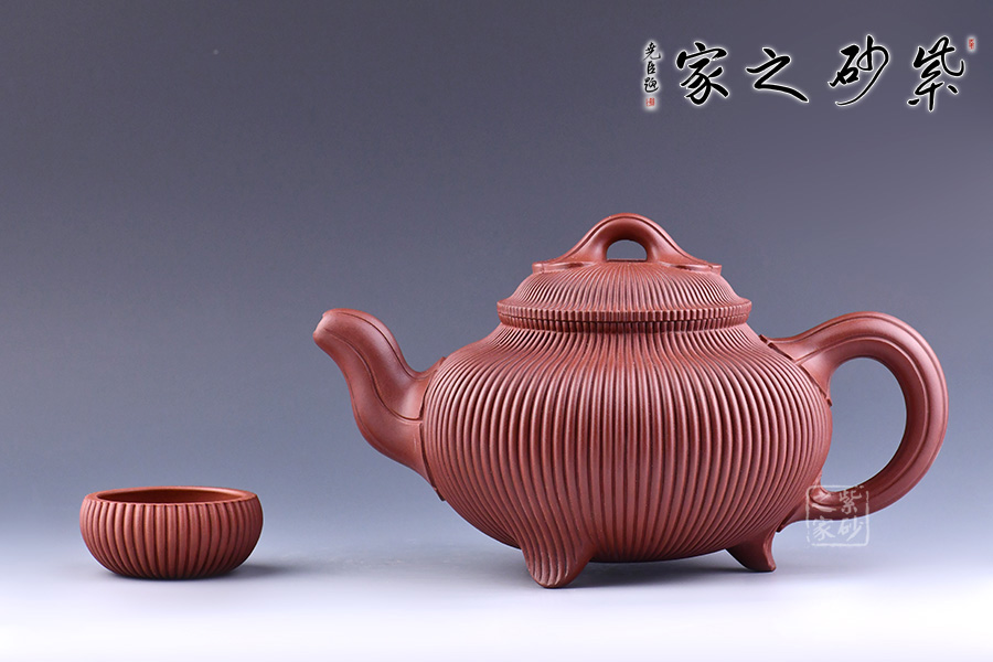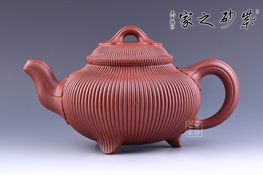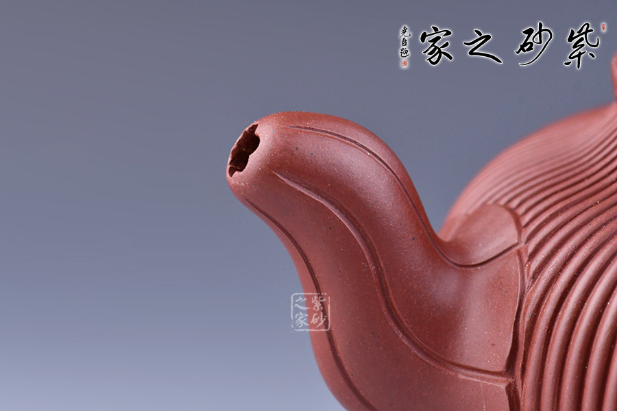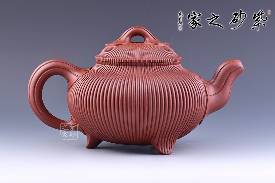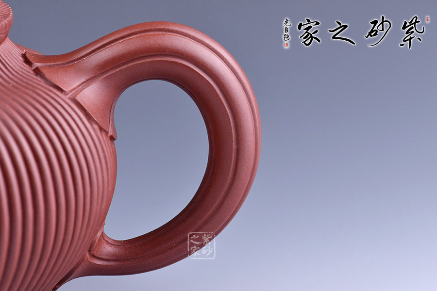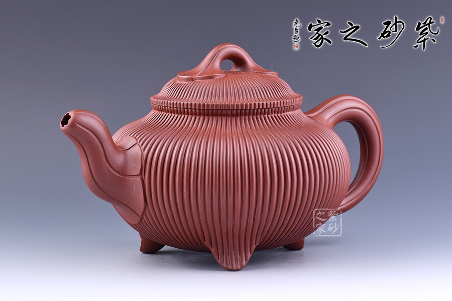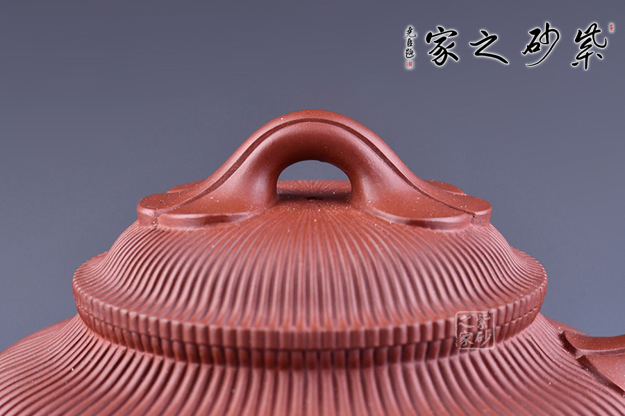 觀之整壺,壺身細(xì)密的筋紋造型分布均勻,令作品平添精絕、玄妙之感。壺蓋與壺身勾勒出108道筋紋,寓意《水滸傳》中108英雄好漢,英雄氣足。此壺壺口、壺蓋咬合部分也十分吻合,氣密性良好。加之從壺身底部續(xù)出的三足,顯得穩(wěn)重內(nèi)斂,相襯合宜。