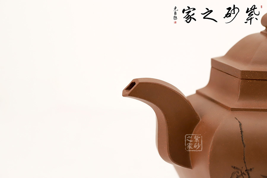 此外,壺身六面刻繪,沈文泰老師操刀,刻縱觀(guān)整壺刀法利落,細(xì)節(jié)精細(xì),工藝十分精湛,此壺乃是不可多得的精品。