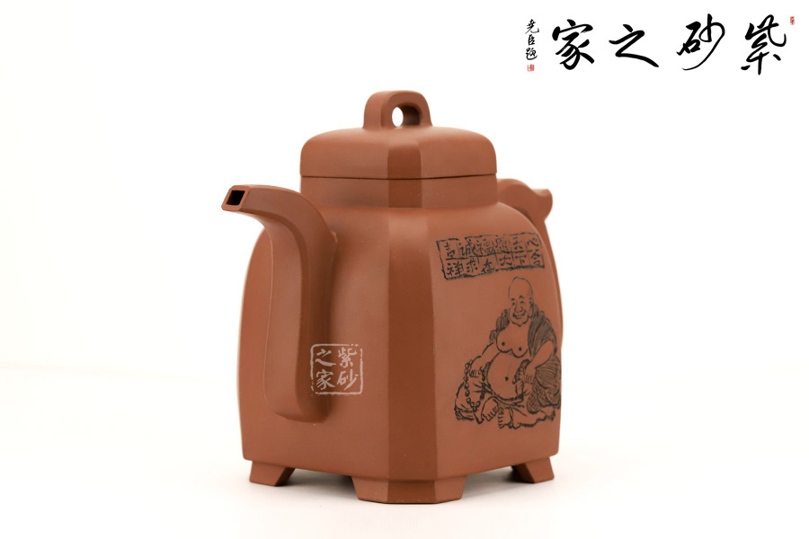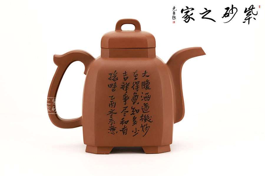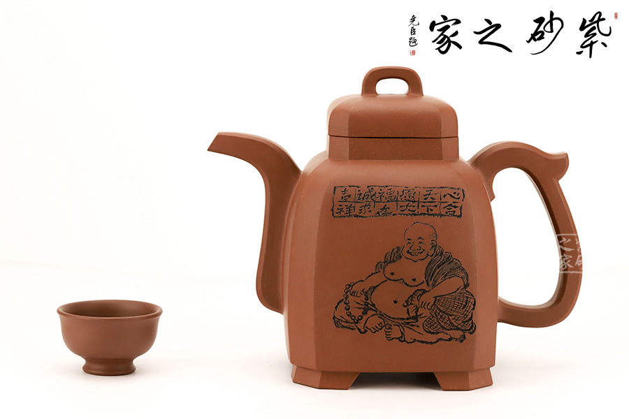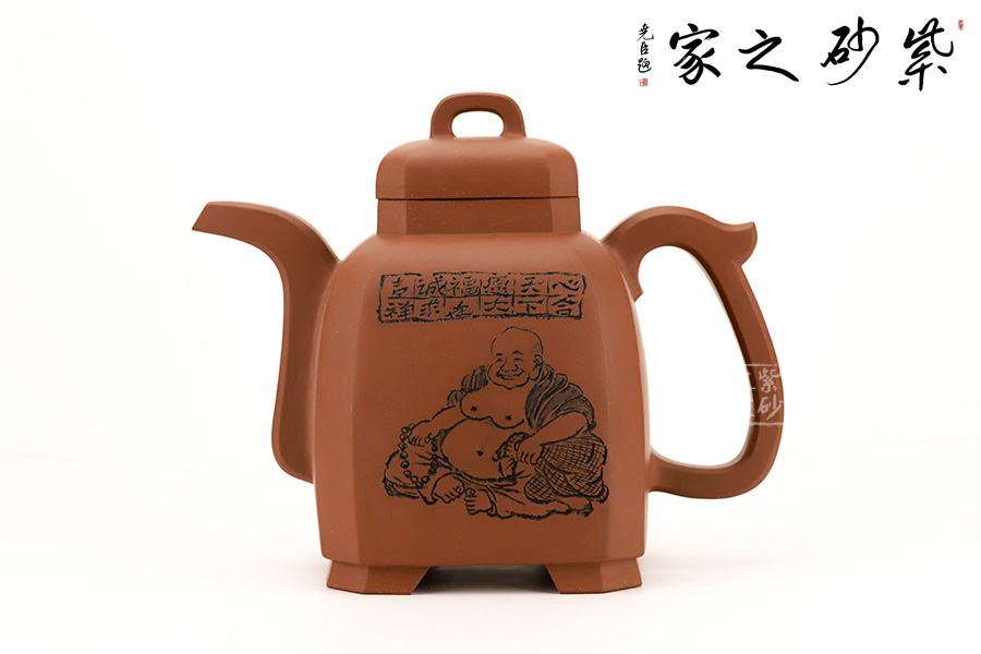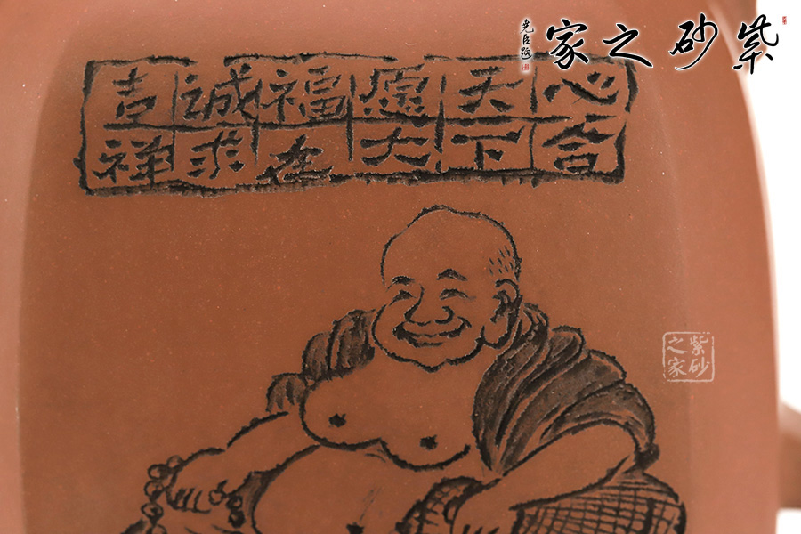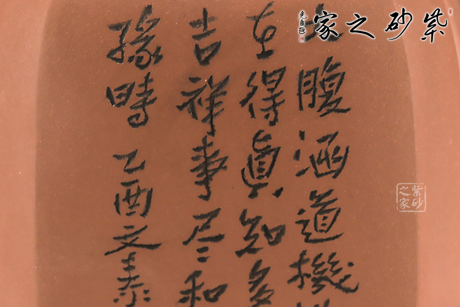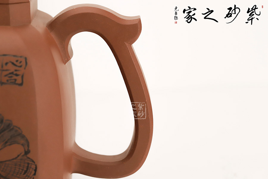 此壺是崔龍君老師制作而成,沈文泰刻繪壺身 崔龍君老師,擅長全手工成型,選泥嚴格,非純正不用。整體身、把”三點一線規(guī)整,充分體現(xiàn)了老師的嚴謹不茍風格,盡展大家風范。此壺不僅在制造工藝上精益求精,將光貨的氣韻表現(xiàn)得淋漓盡致,令人心醉而發(fā)出幽古之情。整器造型簡練,古樸大方,端莊穩(wěn)重,剛中有勁,敦實調和。