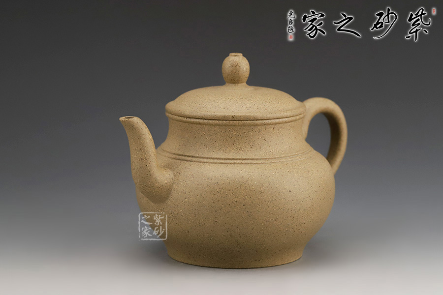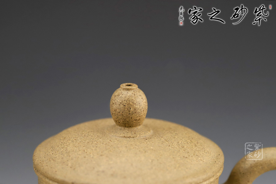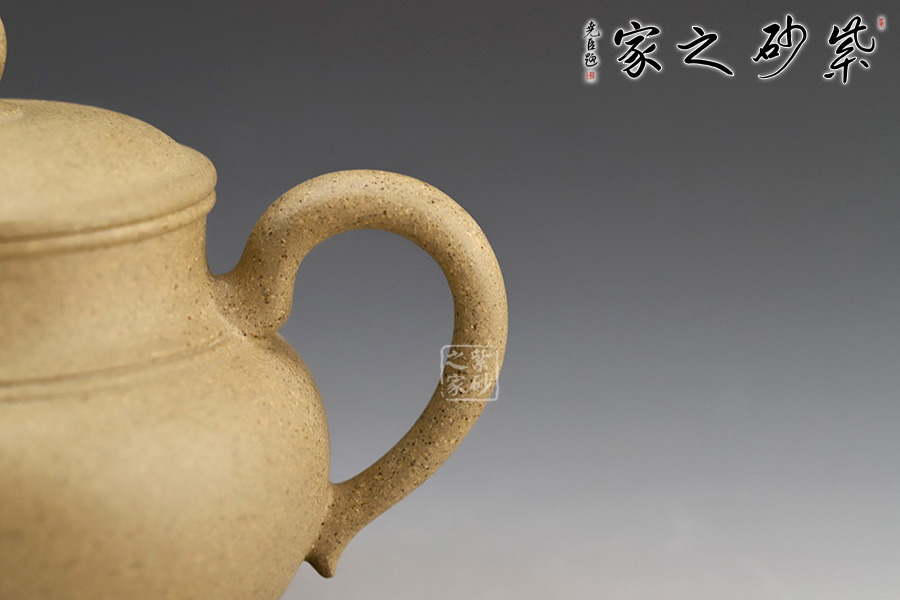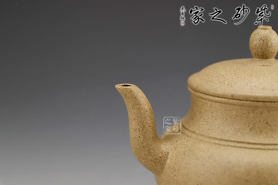 飲月用青段制作而成,色澤古樸,壺型優(yōu)美,大氣美觀。整壺氣韻軒昂,比例協(xié)調(diào),不附加裝飾,僅以器形身線的變化加強裝飾效果,式度優(yōu)雅,體態(tài)昂然,無不佳妙。壺嘴,曲線優(yōu)雅,彎曲上揚;壺把線條流程挺闊,圓潤光滑;壺鈕小巧精致,拿捏舒適。