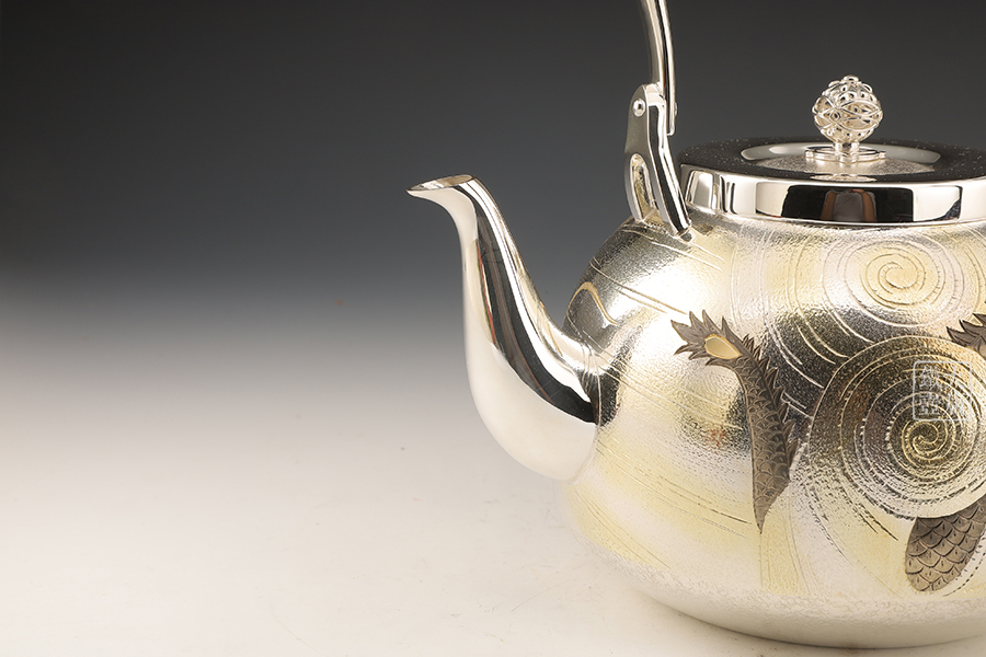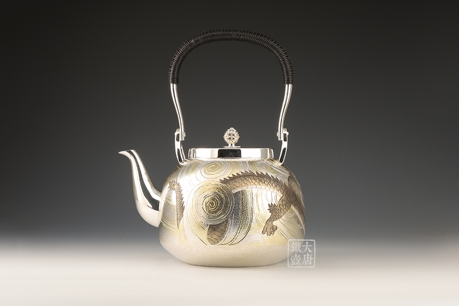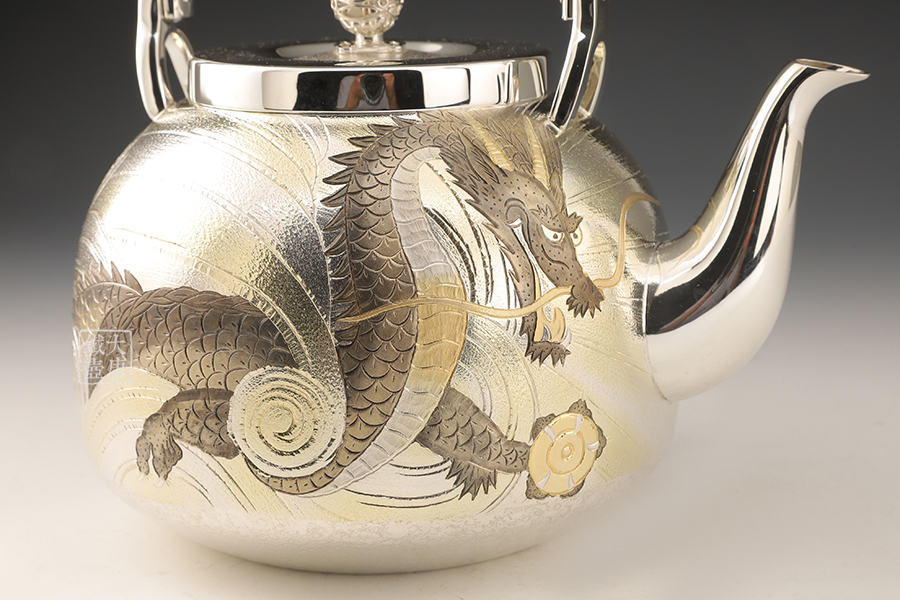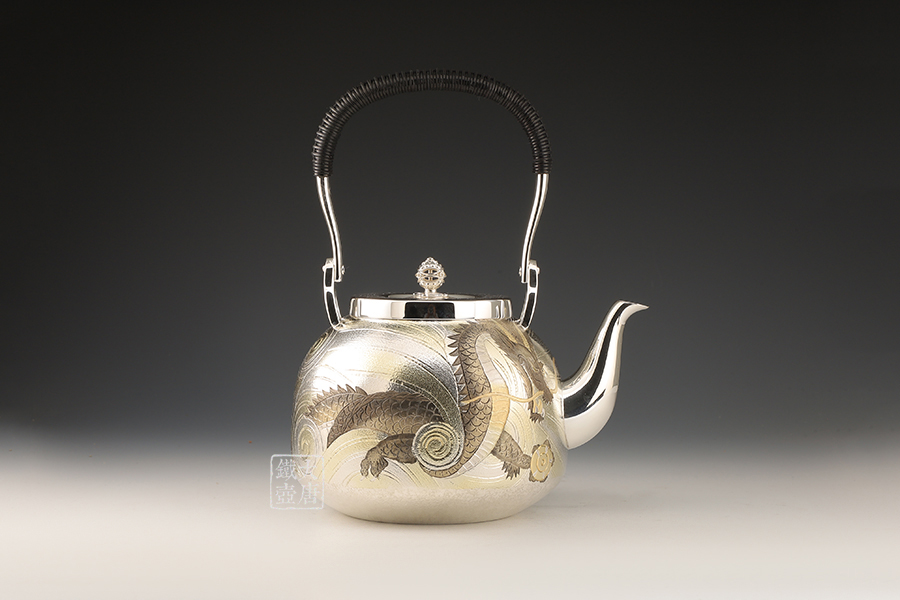 大淵銀器 雕金龍紋銀壺4.5寸 [ 編號:128746 ]