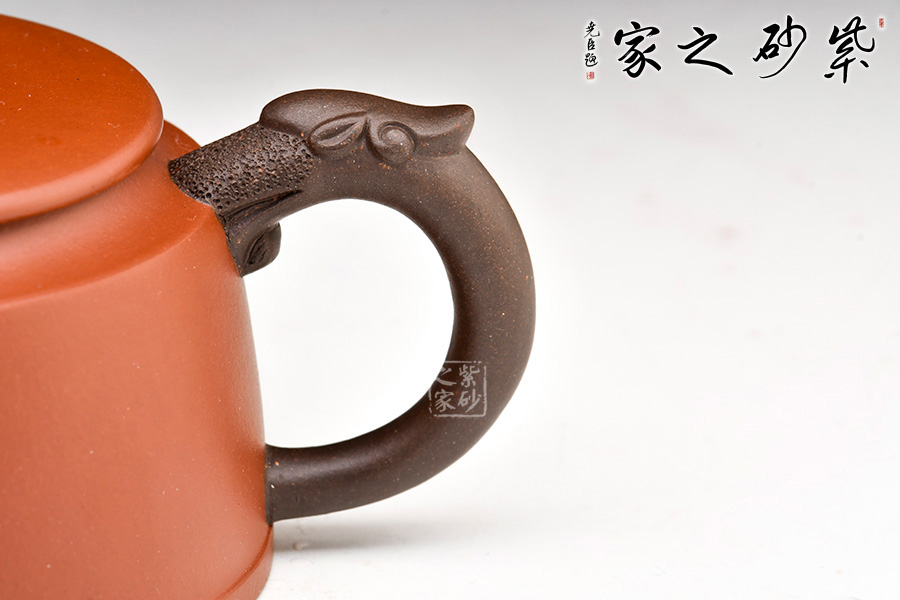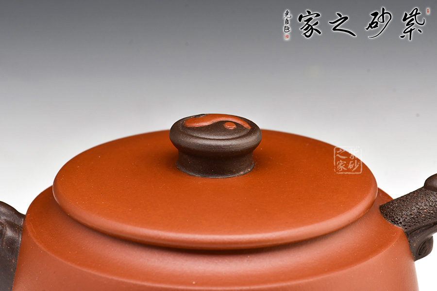 “如意”是中國傳統吉祥物之一,象征祥瑞的器物,被人們賦予吉祥美好的寓意。兩者結合,造就這件寓意十足的紫砂壺。壺身圓潤,線條流暢;壓蓋設計,嚴絲合縫;壺鈕似一個圓柱,最具有特色的是,鈕部頂端刻畫太極圖案,呼應主題;龍頭壺嘴、壺把,端莊大氣,寓意十足。 從上而下,四個圓形依次有序排列,十分美觀大方。
