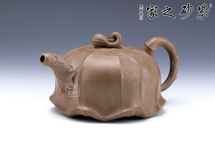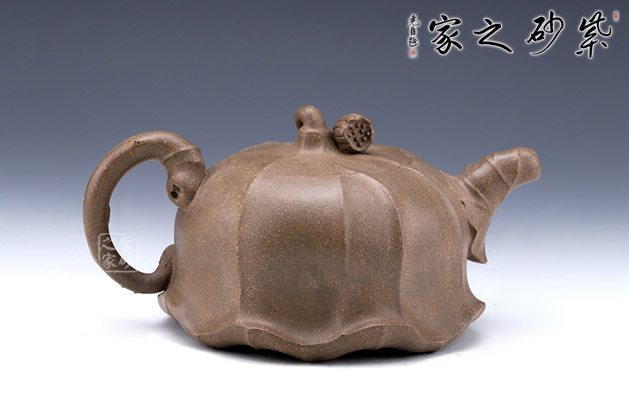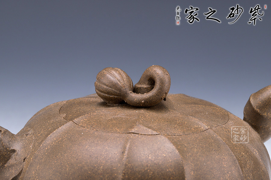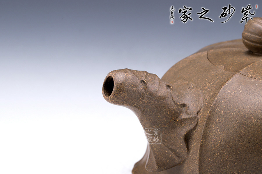 整器造型仿生逼真,線條輕盈流暢,無一處細(xì)節(jié)不體現(xiàn)出作者的用心透徹。整器筋紋紋肌理處理得當(dāng),截蓋設(shè)計(jì),以蒂作鈕,整壺形似一片微斂的荷葉,清清自然;壺嘴以荷葉蜷曲包裹而成,荷梗作端把。整壺器形新穎別致,氣質(zhì)清雅,而荷音同“和”,荷合之壺,寓意和和美美,合家歡樂。