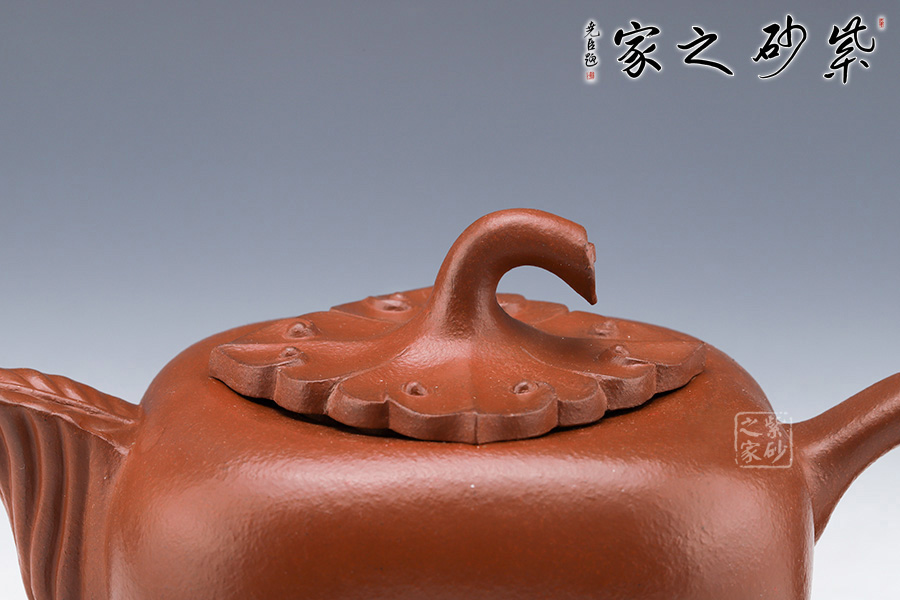 作品壺型整體似一只剛剛成熟蒂落的柿子,外形豐潤(rùn)飽滿(mǎn),仿佛裝滿(mǎn)了厚實(shí)的果肉。壺身上下豐潤(rùn)中間收斂,豐富了柿子的表現(xiàn)力。壺嘴為柿葉造型,壺蓋、把采用寫(xiě)實(shí)的雕塑裝飾手法,將柿子的形象表現(xiàn)的淋漓盡致。壺鈕形如一只柿子蒂,彎轉(zhuǎn)自如,整蓋如柿葉,生動(dòng)逼真。整件作品猶如一只玲瓏的秋柿,象征著碩果累累的金秋,并最終以“事事如意”來(lái)寓意,真切傳達(dá)如意心愿,升華了作品的內(nèi)在氣韻。