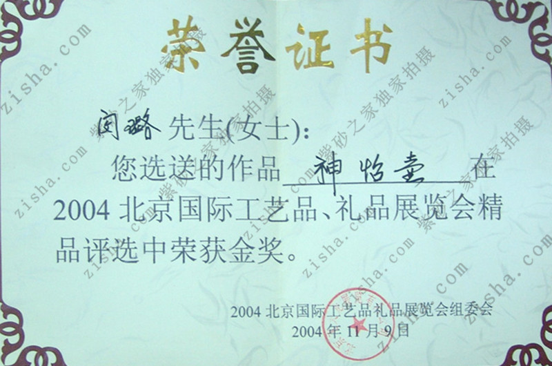 2004年“神怡壺”獲北京國(guó)際工藝品展覽會(huì)金獎(jiǎng);