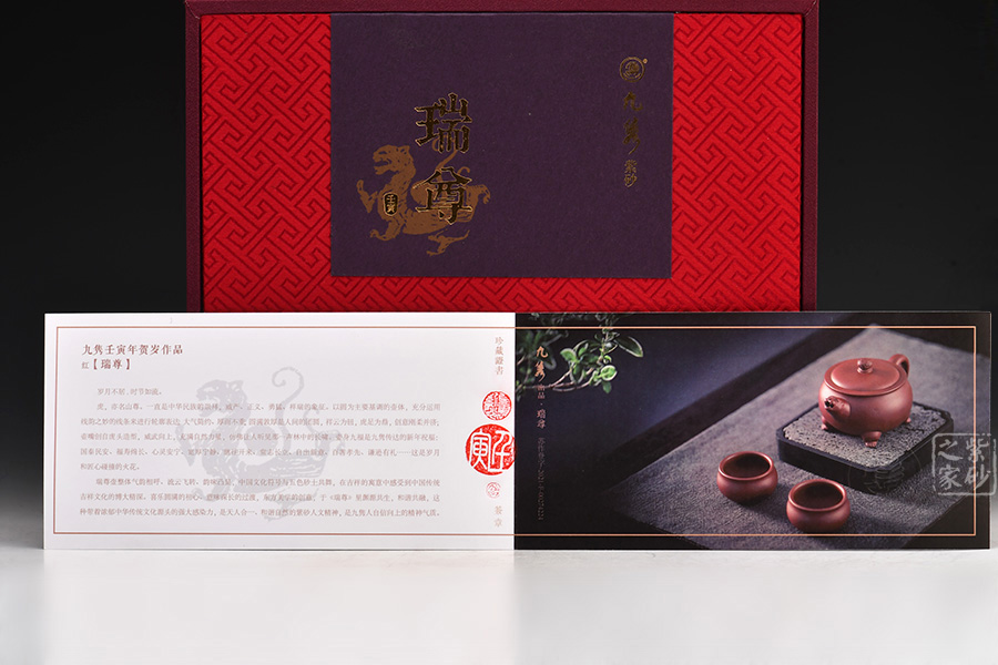 瑞尊壺整體氣韻相呼、流云飛轉(zhuǎn)、韻味凸顯,中國文化符號與五色砂土共舞,在吉祥的寓意中感受到中國傳統(tǒng)吉祥文化的博大精深。喜樂圓滿的初心、意味深長的過渡,東方美學(xué)的創(chuàng)意,于《瑞尊》里淵源共生,和諧共融,這種帶著濃郁中華傳統(tǒng)文化源頭的強(qiáng)大感染力,是天人合一、和諧自然的紫砂人文精神,是九雋人自信向上的精神氣質(zhì)。
