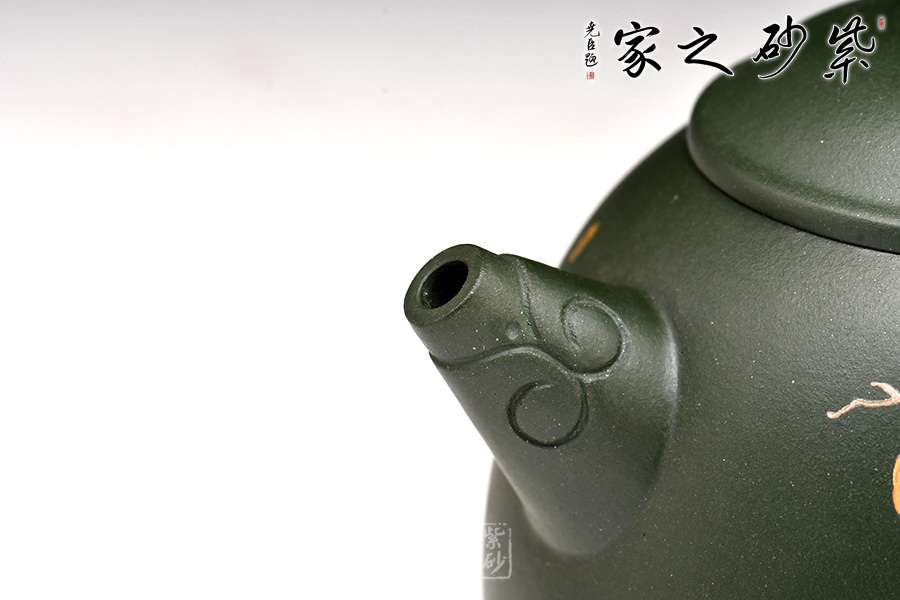 特點(diǎn):泥色特異,青藍(lán)色中略泛綠光,清秀獨(dú)特;稍一泡養(yǎng),色調(diào)更形穩(wěn)實(shí),溫潤透明,變化甚巨,玩賞深具成就感。