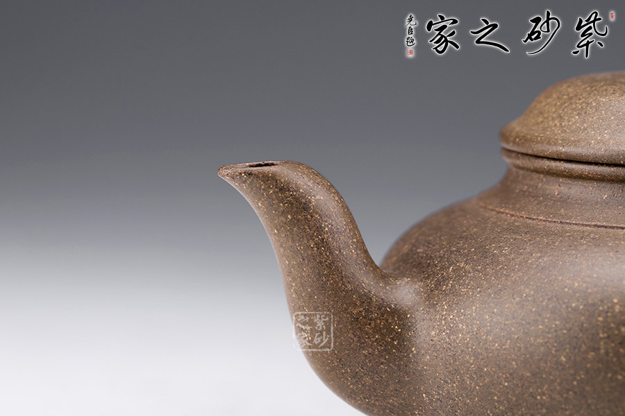 此款笑櫻壺體端莊古樸,線條優(yōu)美流暢,形體飽滿,彼有君子之風(fēng)。三彎流壺嘴,暗接溫和,過渡優(yōu)雅;壺把上置飛扣,彎曲有致,線條優(yōu)美自然;肩部云肩線挺括利落,壓蓋嚴(yán)絲合縫,一粒桃形壺鈕瑩潤剔透; 許智萍老師制作的這把壺,無論從造型設(shè)計實用功能,都達(dá)到了完美之境,是一款不可多得的精品品茗壺。