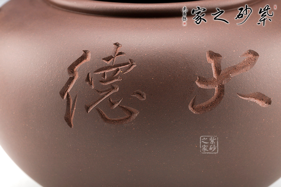 此作器形飽滿大方,一副包容姿態(tài),整體采用紫泥制作,質(zhì)感古樸,沉穩(wěn)大方,且拙中藏雅,典雅與內(nèi)斂相契合,一眼便俘獲了茶友的心。