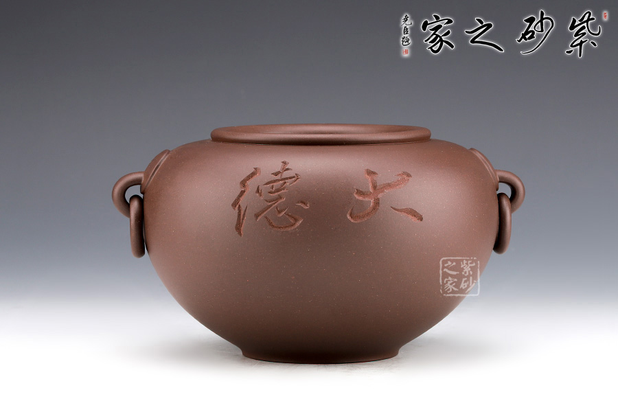 整器仿制青銅器制作而成,球型罐身,圓潤飽滿。兩側(cè)環(huán)形把手制作精細(xì),精致美觀。點睛之筆乃罐身雙面刻繪,正面“大德”,呼應(yīng)主題,反面“天地之大德曰生,生生之謂易”,刀鋒蒼勁有力,字跡雋秀。