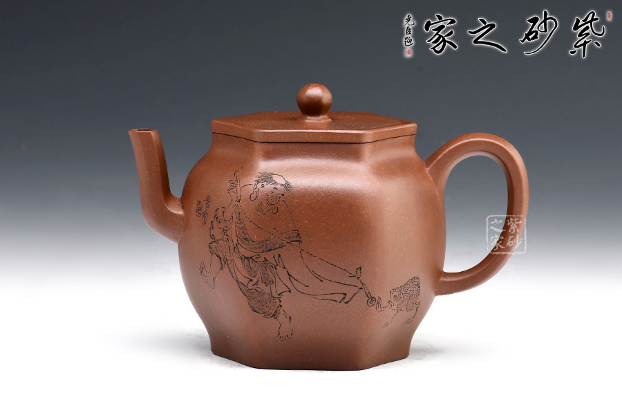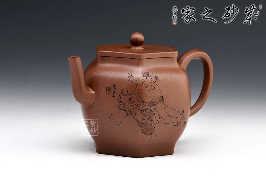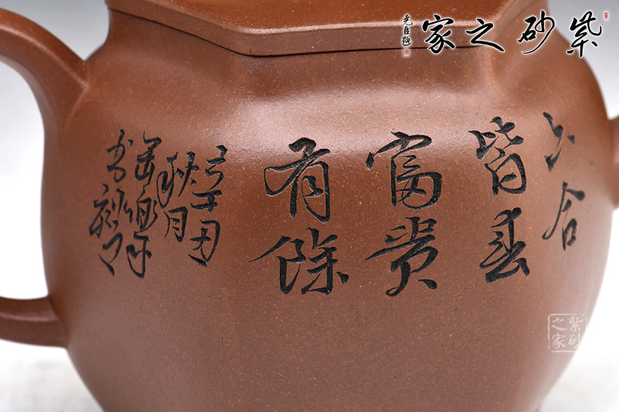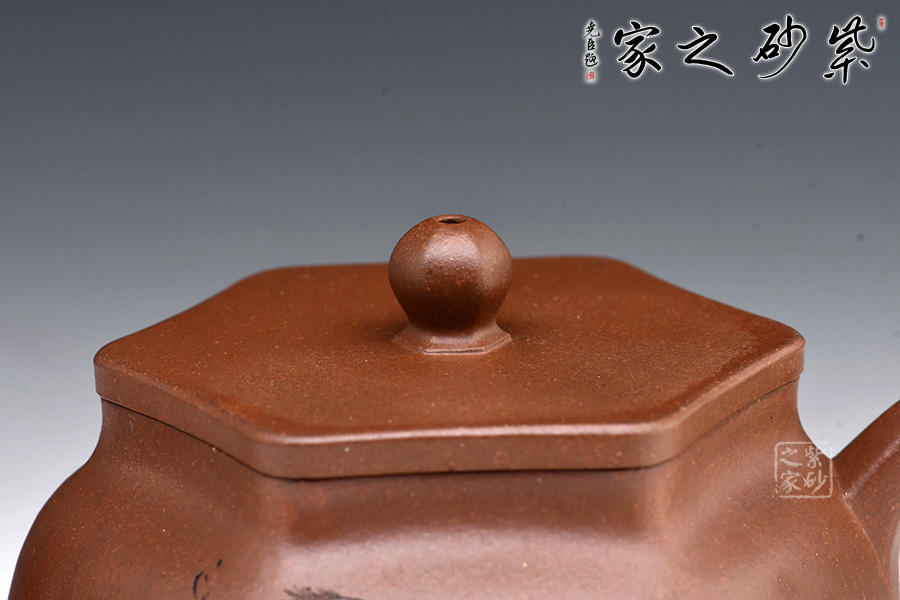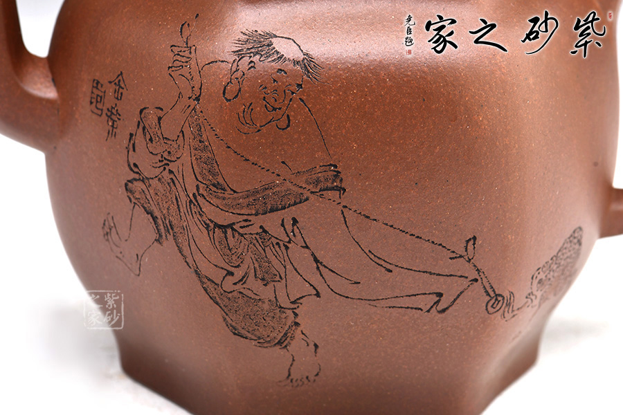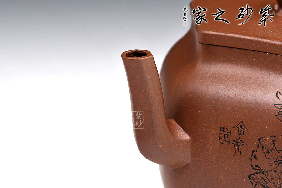 此外,壺身雙面刻繪,刻繪精細(xì),整體做工十分精湛,是一把可賞可用的精品紫砂壺。