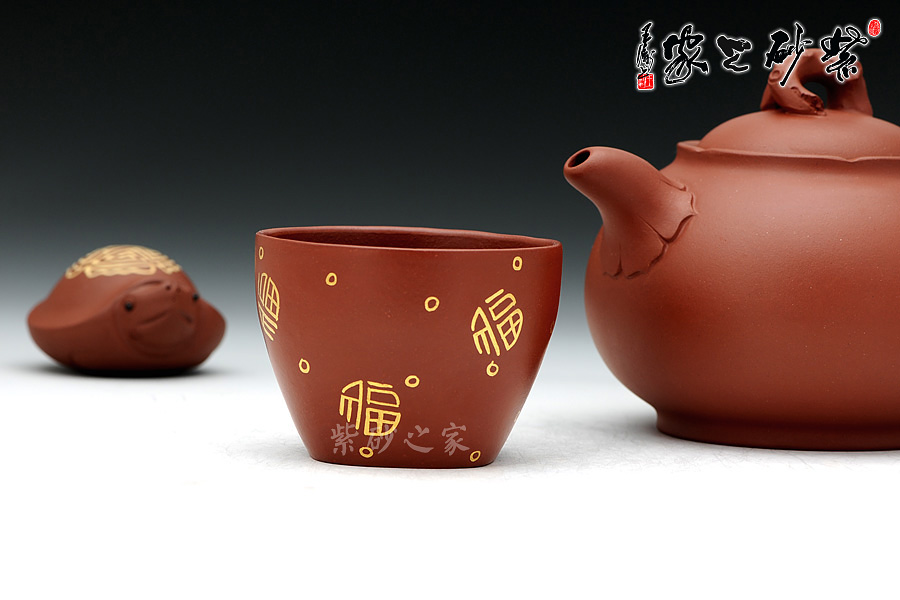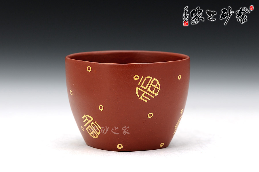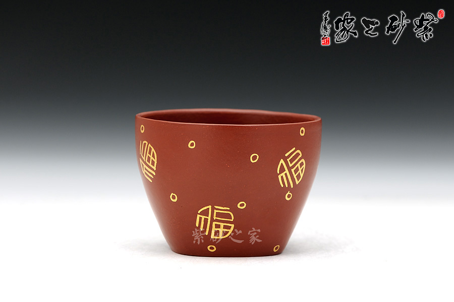 通體裝飾: 裝飾: 描金福字 裝飾者:丁小明 裝飾內(nèi)容: 丁小明老師非常擅長(zhǎng)描金鑲金的工藝,這款品茗杯裝飾的是描金的福字,將福運(yùn)融合到茶韻中。
