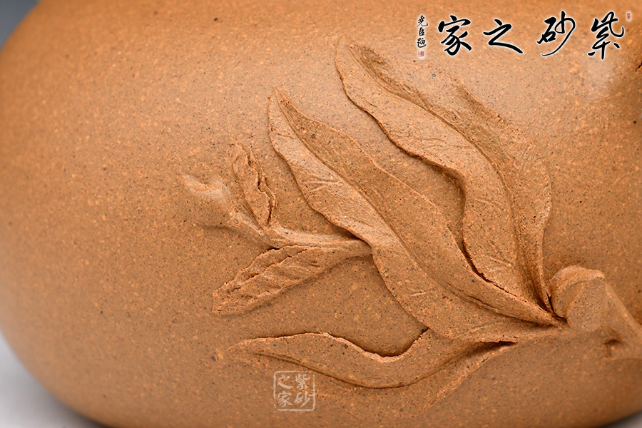 泥性:感甜嫩綿密,質(zhì)堅(jiān)而溫潤(rùn),呈近田黃色調(diào),為江蘇宜興趙莊山系朱泥礦~黃石黃之共生礦,經(jīng)挑揀練製而成,因含鐵量只達(dá)6%左右,致陶之后呈“金田黃色”。