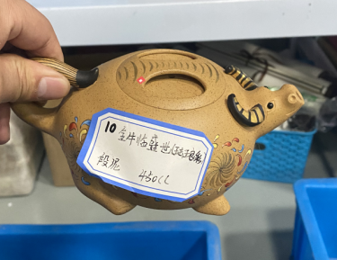 簡介:朱紅微嫣具綿密柔滑之砂感,水色溫潤度中等;熱水沖淋立展嬌嫩鮮紅特色,壺身游移紫光遽現(xiàn),神秘迷人風韻令愛壺人神醉。以之沖茗之茶湯明亮活潑、快意果決、易展揚香而聚甘柔甜。朱泥原礦,胎骨堅硬而沉實,色澤朱紅略泛桔光,溫潤透明質感之佳,與清中期頂級朱泥無異;大器無法燒成,小品燒成后穀皺紋隱現(xiàn),頗具古代朱泥風華。趙莊的朱泥原礦灰、白、帶黃棕色,呈片狀結構;本原礦由于泥性較重,故較不易成砂,需採自嫩泥礦中較堅硬的部份(年代較久, 且成陶后色調較紅豔,古稱“石骨”),再經(jīng)敝古陶研究所繁複全手工的練製程序后,始能成陶!