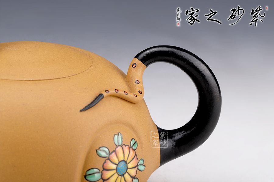 泥性:感甜嫩綿密,質(zhì)堅而溫潤,呈近田黃色調(diào),為江蘇宜興趙莊山系朱泥礦~黃石黃之共生礦,經(jīng)挑揀練製而成,因含鐵量只達(dá)6%左右,致陶之后呈“金田黃色”。