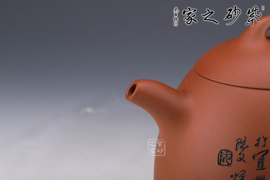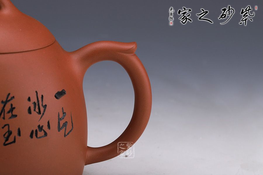 秦權(quán)壺是傳統(tǒng)壺型之一,將中國古代“秦權(quán)錢”與紫砂壺巧妙地結(jié)合在一起,整體造型設(shè)計成為秦代貨幣秤砣的樣式,不僅大氣十足,更見張力。此壺線條粗獷,通體流暢,銜接緊密。截蓋處理渾然天成,與壺身銜接處嚴絲合縫,毫無虞露; 一彎式流嘴做暗接處理,壺嘴微微下垂。耳形把婉轉(zhuǎn)生動,顯內(nèi)斂、沉穩(wěn),正切合秦權(quán)古韻,經(jīng)典演繹已達到完美的結(jié)構(gòu)。