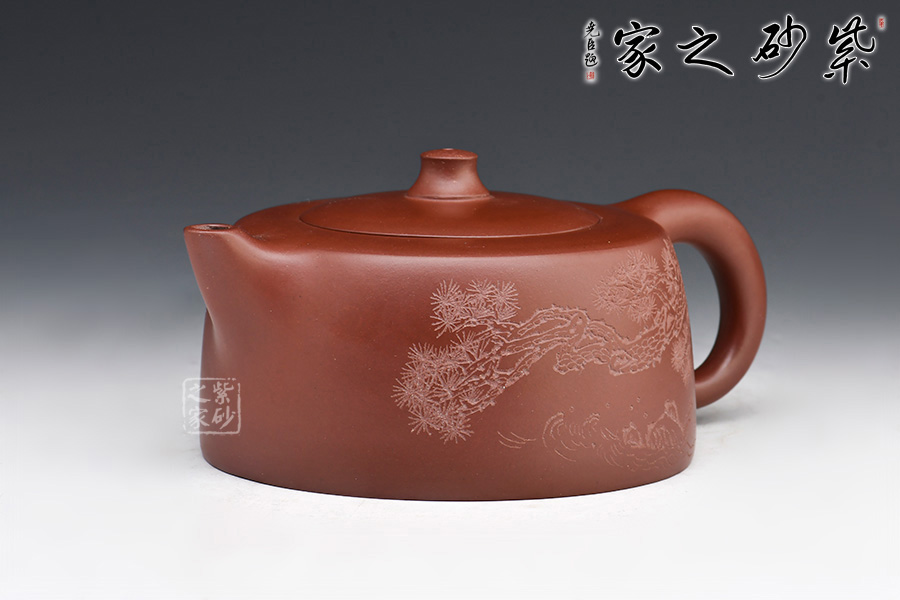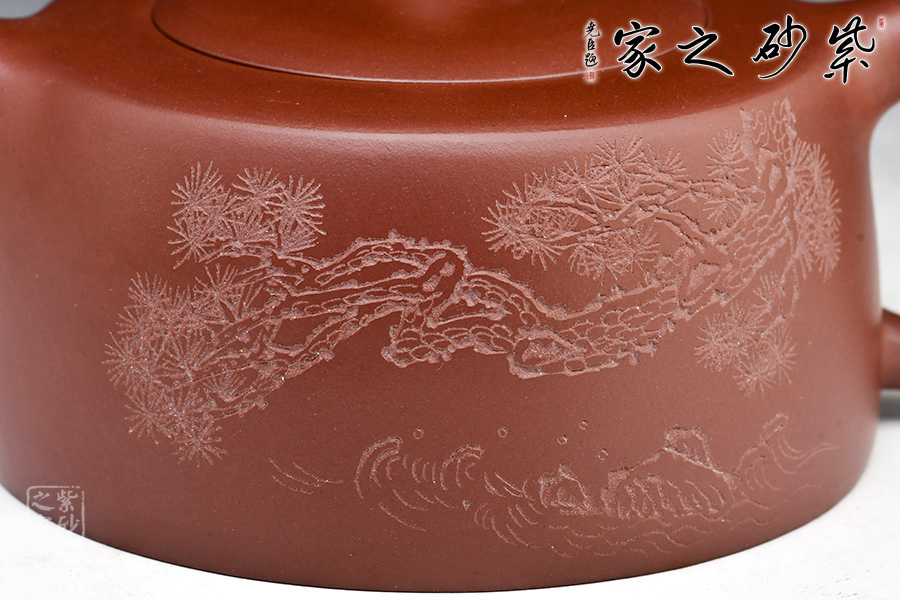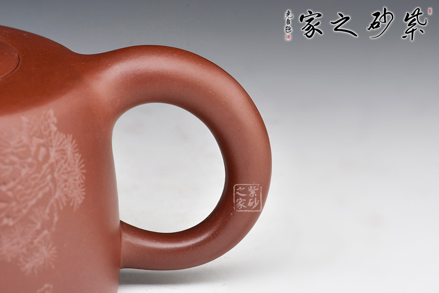此壺制作精巧,獨(dú)具匠心,以簡潔的線條構(gòu)成淳樸凝重的形體,深厚且具神韻,設(shè)計(jì)上空間明快,虛實(shí)和諧,提諧舒適,有端莊古樸之意境,方圓之間恰到好處。