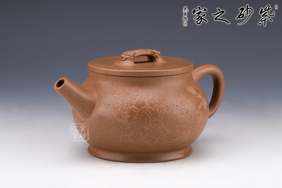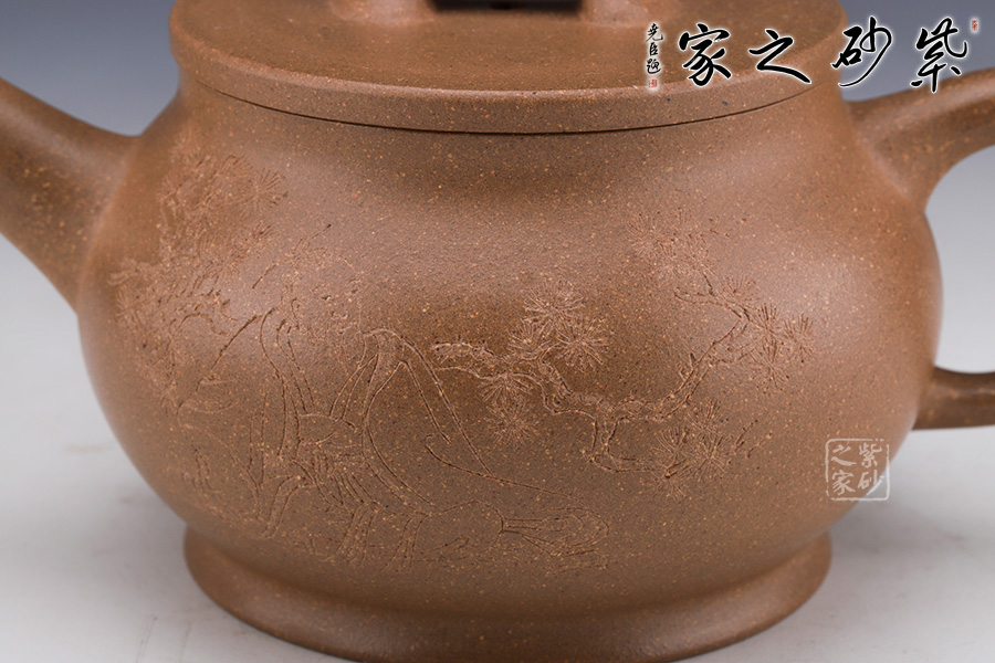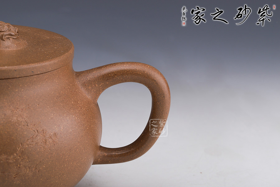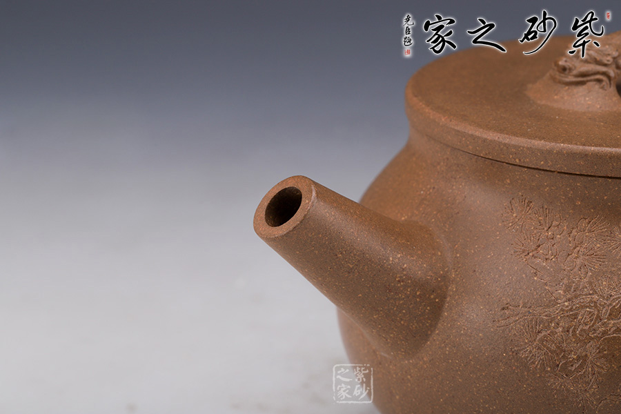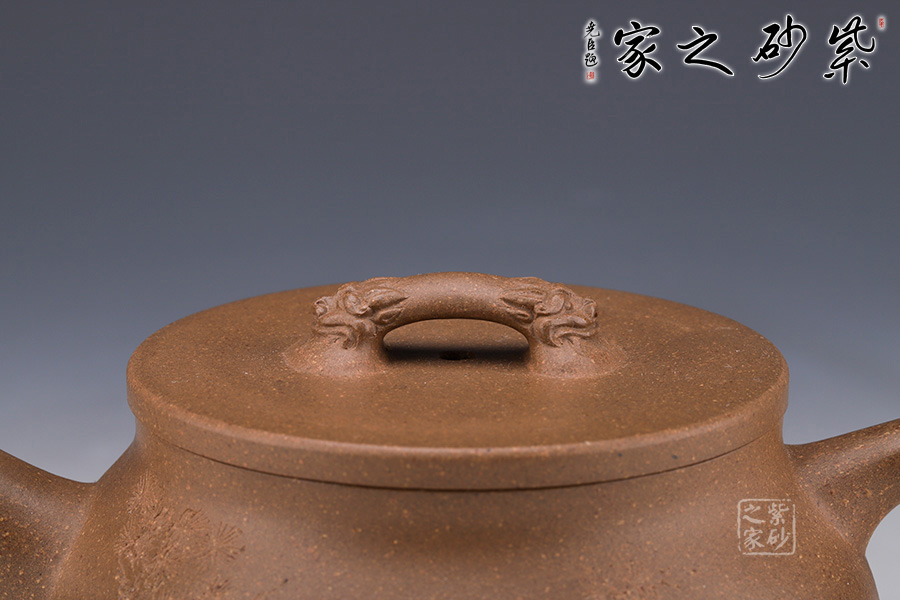 此壺壺身飽滿,壺把細(xì)圓,直流長壺嘴自然胥出,樣式簡潔,線條柔和美觀,造型簡練樸素,做工精細(xì)周到,圈足四平八穩(wěn),蓋平,柔中帶剛的美。橋鈕雙龍?jiān)煨停?/span>增加此壺的觀賞性,通身素雅其實(shí)用性亦高,不可多得的作品之一。