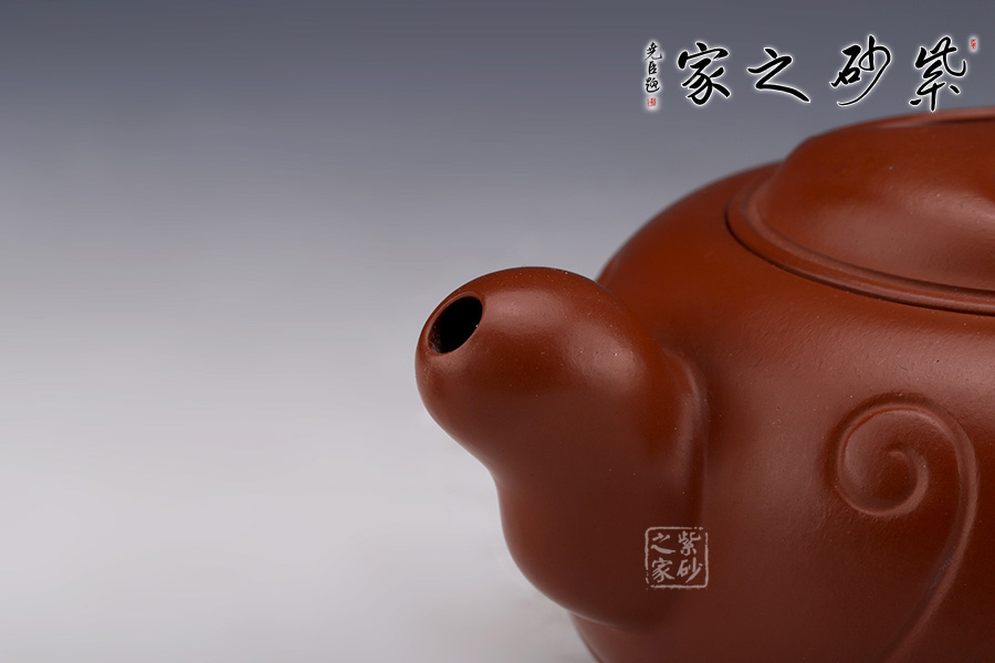 特點:質(zhì)感綿密、緊實細(xì)緻,持之扎實沉重、紅潤豔麗,泥中極品,無以倫比;泥胚含少許原礦顆粒,沖淋熱水后色變極大,呈紅中帶紫,養(yǎng)壺易現(xiàn)“包漿”之美。