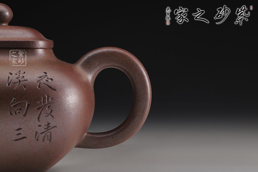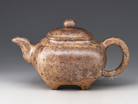 此壺取自經(jīng)典器型傳爐壺,因成型技藝難度高,極為考驗制作者功底。精選高溫度段泥,全手工制成此壺,濃郁古樸的泥色,加之粒粒砂感,盡顯傳爐之古韻。整壺造型仿若一香爐,壺身骨肉亭勻,上豐下斂,輪廓清晰,線條流暢。流、把自然胥出,挺勻有力。底作四釘足,穩(wěn)而秀巧。