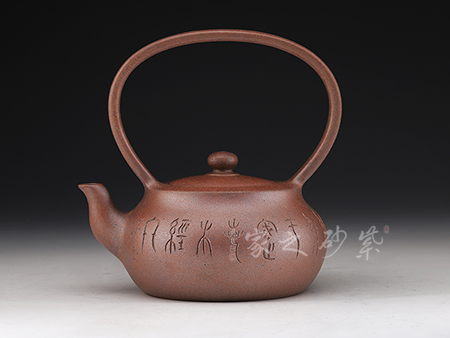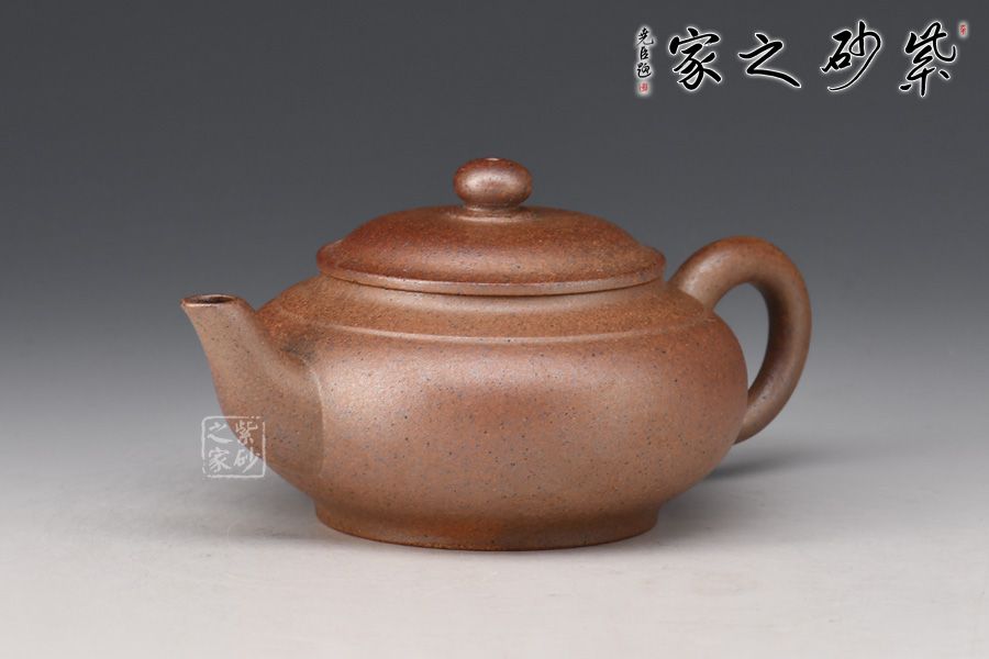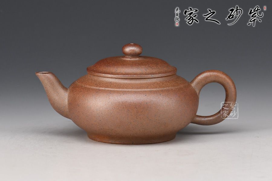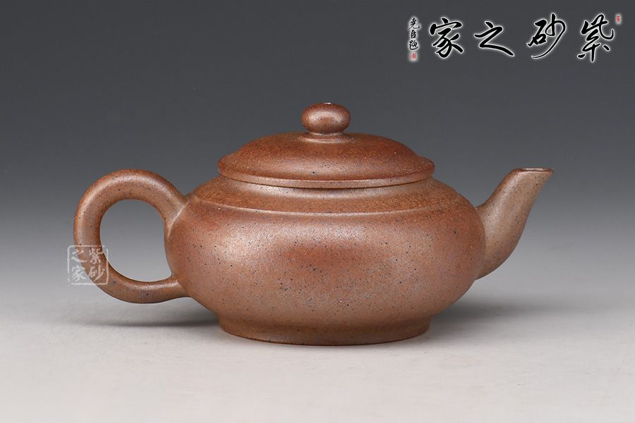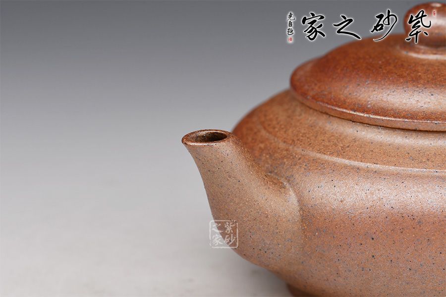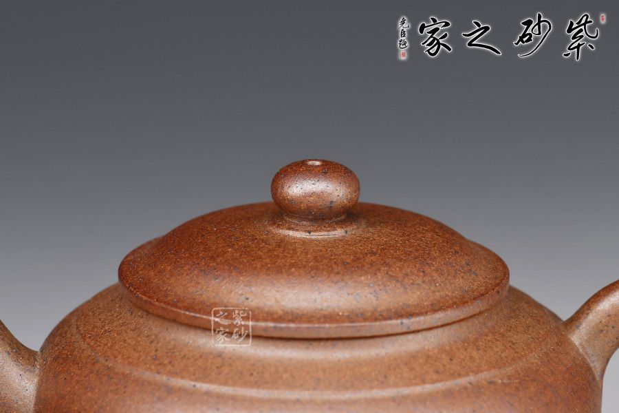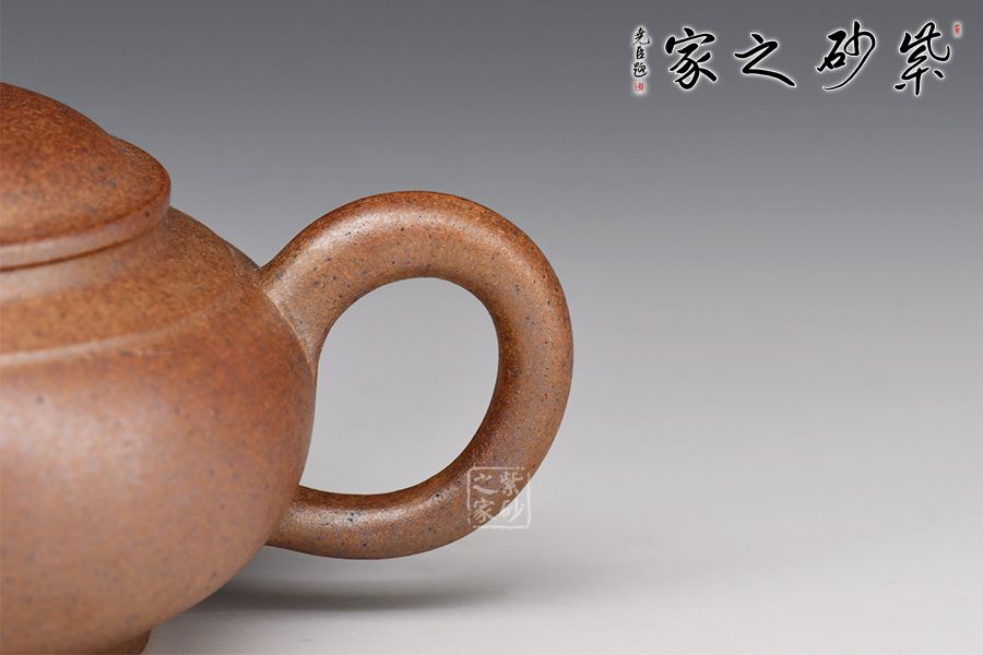此壺造型古樸,腹圓而鼓,壓蓋蓋面蓬勃飽滿,氣密性良好;暗接耳形把,彎曲有致,弧度大小合適;一彎流嘴口略微下壓,出水暢快;壺身結(jié)構(gòu)自然和諧,十分優(yōu)美,平靜中孕育著動感,頂蓋上的寶珠鈕更具神韻。