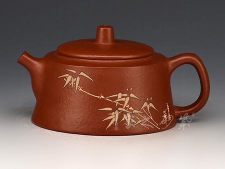 蒯良榮先生制壺的泥料都是自己到泥礦宕口親手挑選,其選泥的過程簡直可與淘金相媲美。成堆的泥料他選不中,往往空手而返,偶爾在那不經(jīng)意的角落,發(fā)現(xiàn)一星半點(diǎn)合意的泥塊如獲至寶,捧回家中分開別類貼上標(biāo)簽,露天存放使其陳腐,腐熟極致,再專門用石磨磨成泥漿,而后再用篩濾,再磨再濾。精益求精,在此可謂細(xì)益求細(xì)。臺灣客戶用手捻之,嘆曰:泥中極品!良榮先生藝海耕耘四十余載,集原料選配,設(shè)計(jì),創(chuàng)作和燒成技藝于一身。他的作品選型優(yōu)雅,線條挺括,充滿神韻。他創(chuàng)作的各種朱泥小品壺享譽(yù)國內(nèi)及日本、韓國、加拿大等國。他特別擅長制作筋紋器,其代表作“菊瓣元條”、“葵掇球”、“對角如意”在《天地方圓》,《世界藝術(shù)家》,《鑒賞珍玩》,《紫泥新韻》,《壺魂》等多種報刊雜志上發(fā)表刊登。
