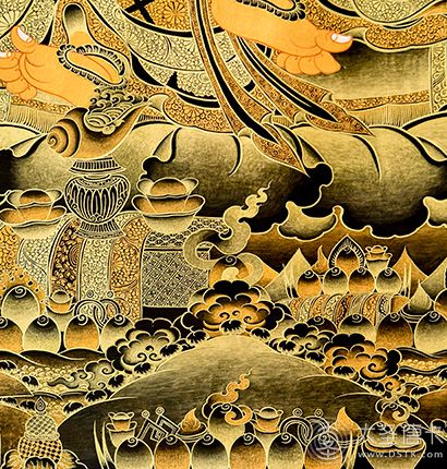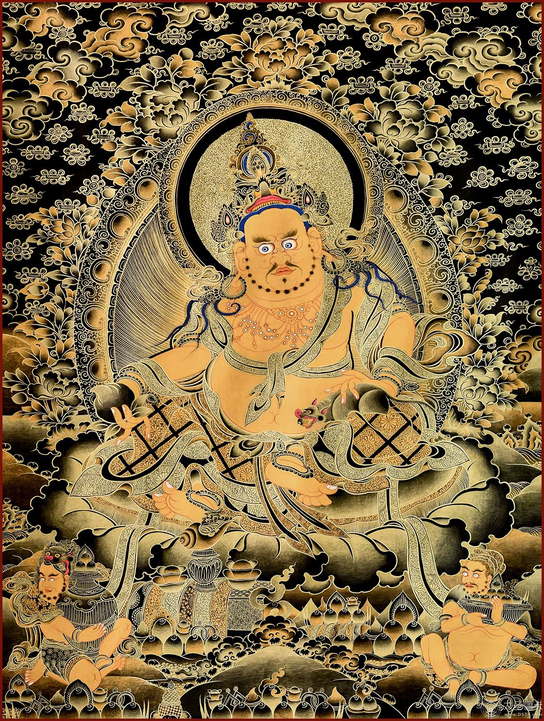 黃財神,藏名藏拉色波,是密教之護法神祇,諸財神之首。黃財神是藏傳佛教各大教派普遍供養(yǎng)的五姓財神之一,因其身膚黃色,故稱為黃財神。