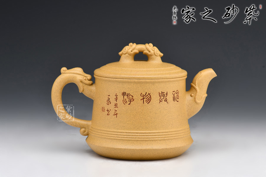 泥性:泥料內(nèi)所含顆粒較大結(jié)構(gòu)疏松器身明顯成雙氣孔結(jié)構(gòu),空氣對(duì)流順暢;日久使用,漸露鋒芒,養(yǎng)成變化甚大為養(yǎng)壺之最佳器材。泡茶好喝,贊不絕口!早期泥料調(diào)配跟早期窯爐所升溫度較低溫,在一般緞泥產(chǎn)品會(huì)“吐黑”;近期來(lái)所用窯爐為高溫窯,所燒成之緞泥壺,可輕易提升至所須溫度,而真正達(dá)到較高的結(jié)晶,絕不吐黑。