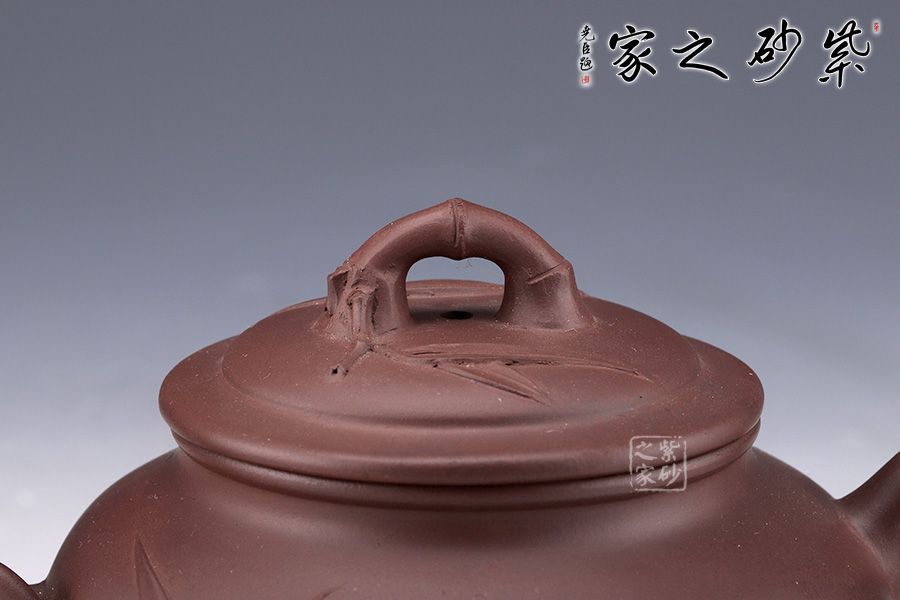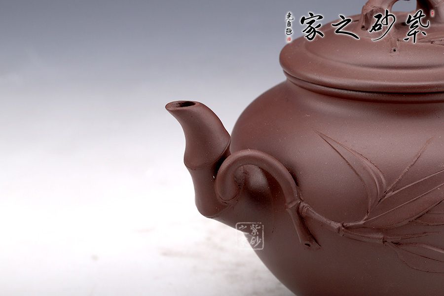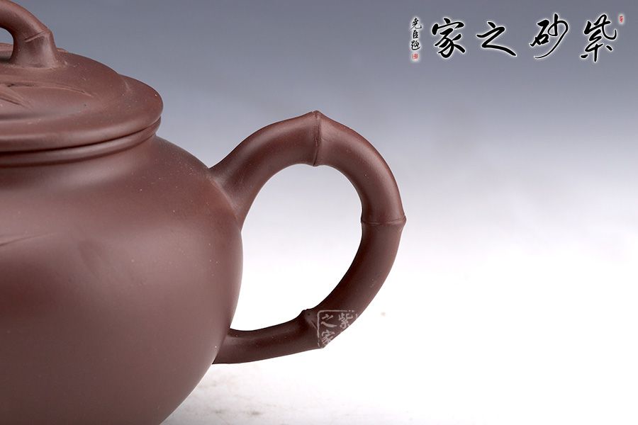 聽(tīng)竹古樸間透著雅致,是一款十分有意思的作品;壺身線條優(yōu)美流暢,手感佳,采用精品原礦老紫泥制成,砂粒豐富自然,手感光潔如玉,溫潤(rùn)典雅;壺身形體飽滿,線條流暢,有君子之風(fēng);壺嘴以竹節(jié)為形,蒼勁古雅,一枝竹葉匐于壺身,纖薄靈秀;耳形端把亦呈竹節(jié)造型,纖瘦有節(jié),彎曲有致,線條優(yōu)美自然,肩部云肩線挺括利落,壓蓋嚴(yán)絲合縫,三段竹節(jié)作鈕,別致有趣;傳統(tǒng)經(jīng)典作品的創(chuàng)新演繹,推陳出新之作,令人眼前一亮。