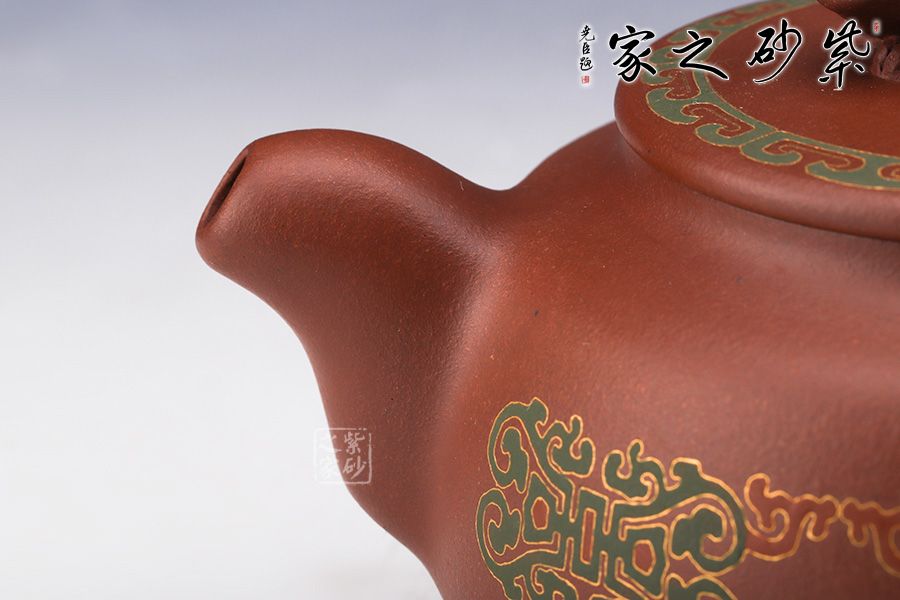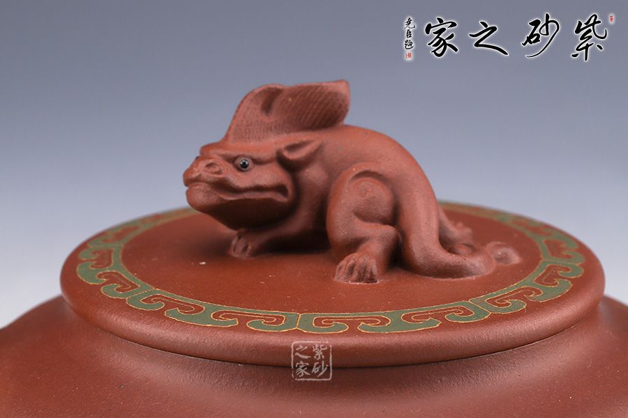 此壺造型簡(jiǎn)潔質(zhì)樸,既簡(jiǎn)潔又大氣,寬和舒適。在中國(guó)傳統(tǒng)文化中,向以九來(lái)表示貴數(shù),有至高無(wú)上之寓意。壺鈕以龍形取代,突出壺本身的語(yǔ)意。配以壺身生動(dòng)的九子人物刻畫(huà),感覺(jué)栩栩如生,生動(dòng)不已。俗語(yǔ)言“龍生九子,各有不同”養(yǎng)壺把玩,也亦如此。本壺是一把不可多得的賞玩佳作,值得所有愛(ài)壺懂壺者收藏品味。