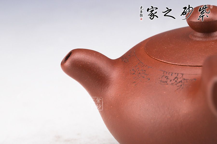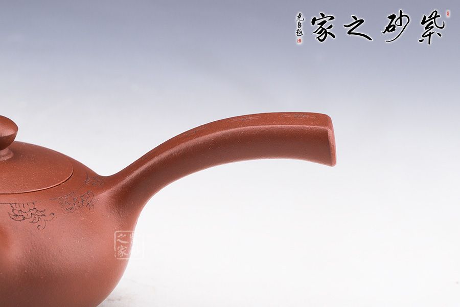 此壺的做工秀氣雅致,做工精細(xì)、泥料上佳,造型經(jīng)典,壺把和壺嘴構(gòu)成大于九十度的角度,這是一款壺嘴與壺把未對稱的一款器型,卻也是值得耐得尋味。