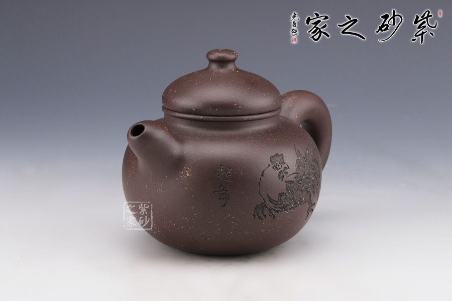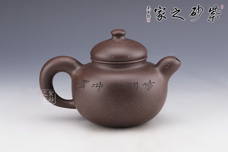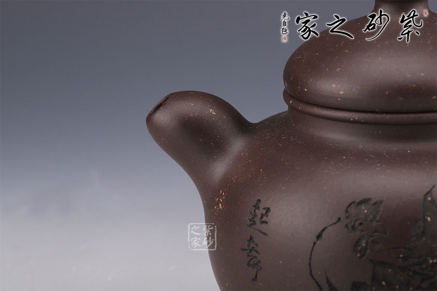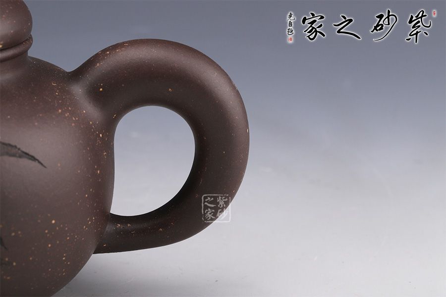 “相撲壺”原為大師呂堯臣人體系列作品之一,在看了一場日本相撲比賽之后,靈光閃現(xiàn),創(chuàng)作而成,然而在張泉林老師的手中,這款相撲壺卻自有一番韻味。 整器造型憨胖,敦實厚重,沉穩(wěn)有力。壓蓋設(shè)計,嚴(yán)絲合縫,小巧壺鈕,精致可愛。流與把舒暢自如,工藝精到,將富有的自然之美賦于紫砂之上,這是紫砂與自然的頌歌。