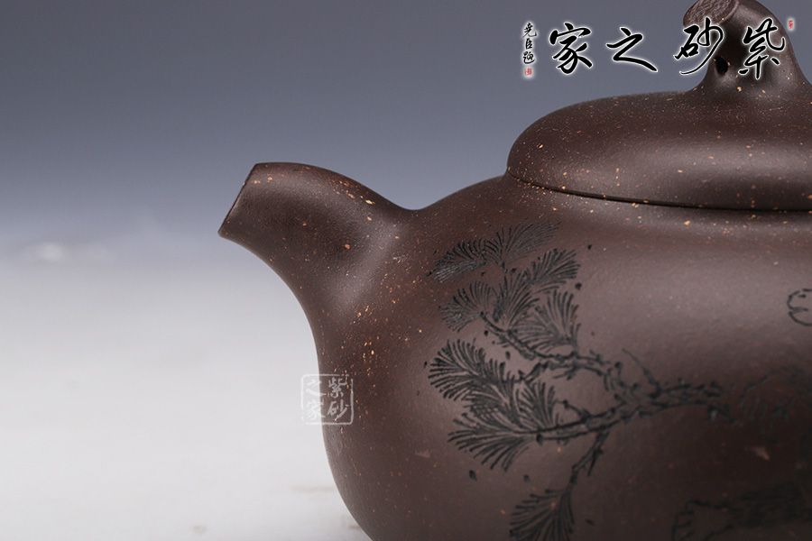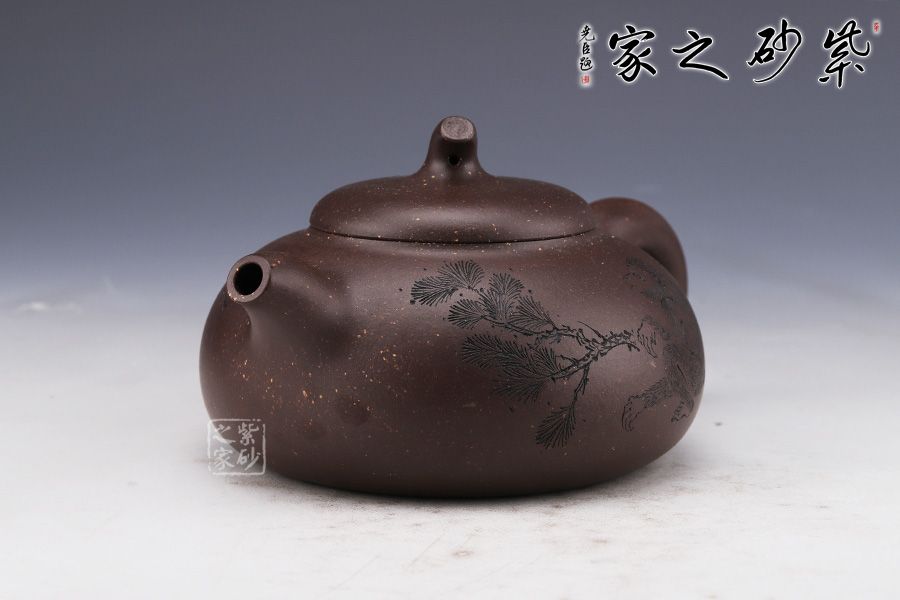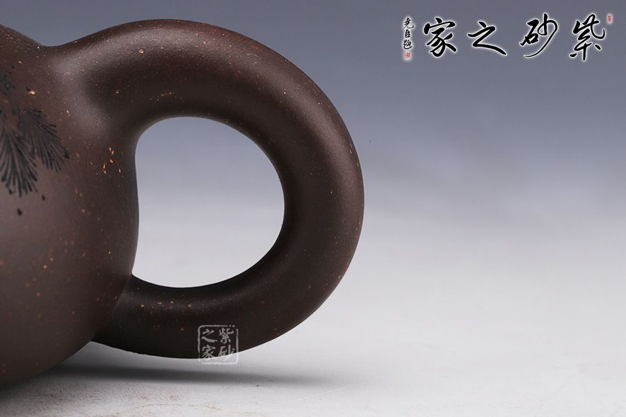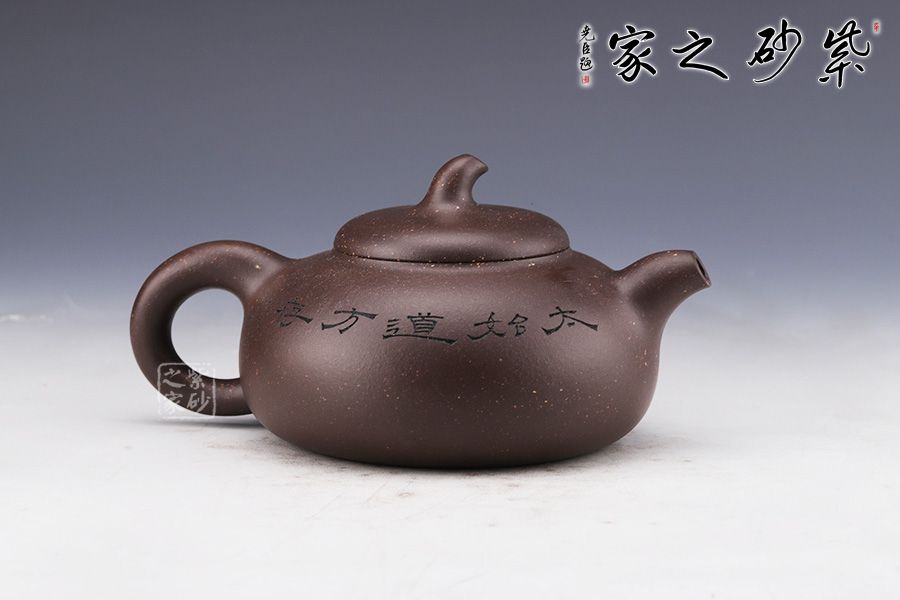 瓜壺是紫砂花貨中非常經(jīng)典的一款,靈感來源于自然,造型簡(jiǎn)練優(yōu)美,敦實(shí)厚重。壺身用圓潤(rùn)的線條勾畫出茄瓜之美,憨胖可愛,沉穩(wěn)有力。壺鈕如瓜蒂,逼真有趣。流與把舒暢自如,工藝精到。