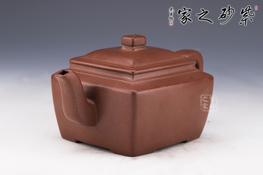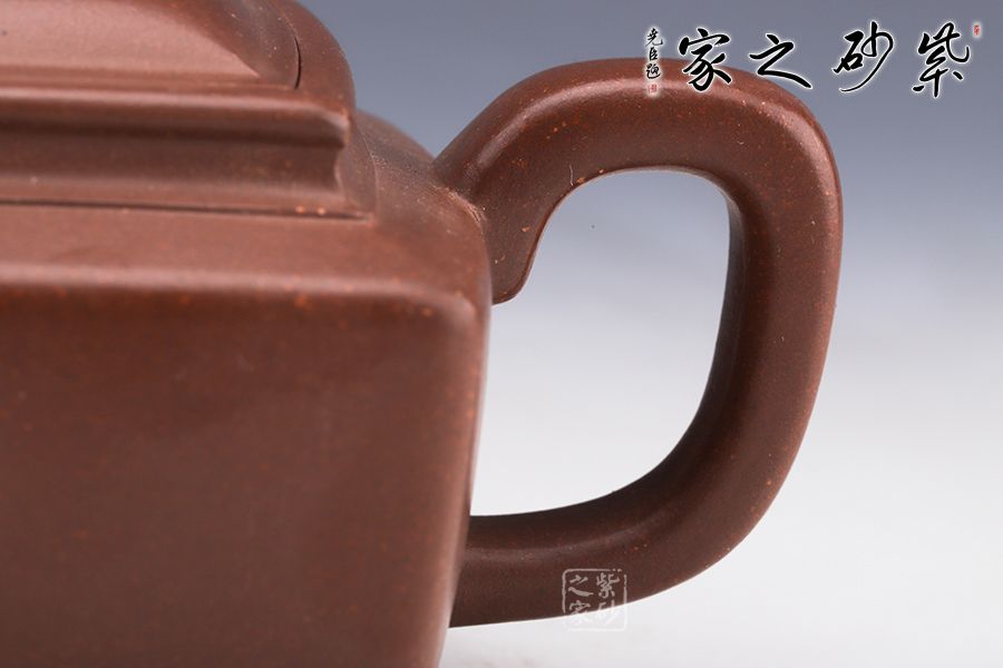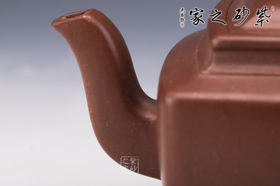 經(jīng)典四方壺,以簡(jiǎn)練的造型,彰顯大氣磅礴之態(tài) 整壺線條流暢而富有變化,為壺中佳品。壺身四條肩線棱角分明,延伸至底部則呈現(xiàn)方形,穩(wěn)重實(shí)在。壺蓋平滑,壺鈕虹飛有勢(shì)。四方的二彎流與飛龍把,線條利落簡(jiǎn),工藝精湛。