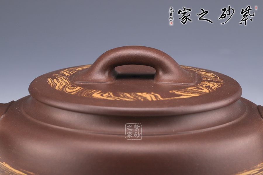 壺身線條流暢自如,壓蓋設(shè)計(jì),做工極其精湛;此款作品,尤其難得的是,壺身、壺蓋以絞泥裝飾技法與傳統(tǒng)制壺相結(jié)合,并融入中國(guó)傳統(tǒng)文化精華,形成了自己的風(fēng)格特色,突出了自己的鮮明個(gè)性,令人喜愛(ài)。