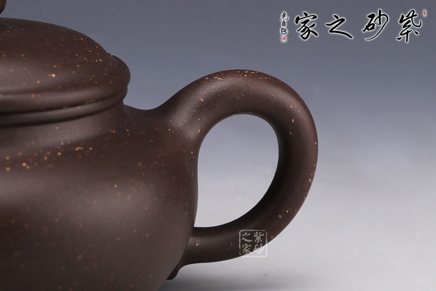 一款傳統(tǒng)器形仿古壺,蓋板平滑,壺蓋與口沿子母線吻合嚴(yán)密,合成圓線飽滿,扁鈕有力,彎流胥出自然。優(yōu)選底槽清韻味拙樸,細(xì)質(zhì)細(xì)膩手感極佳,乃泥中佳品,全手工的制作技藝將砂壺的精氣神表現(xiàn)得十分到位。器身泥質(zhì)均勻,色澤圓潤(rùn),捧在手中把玩,古韻十足。