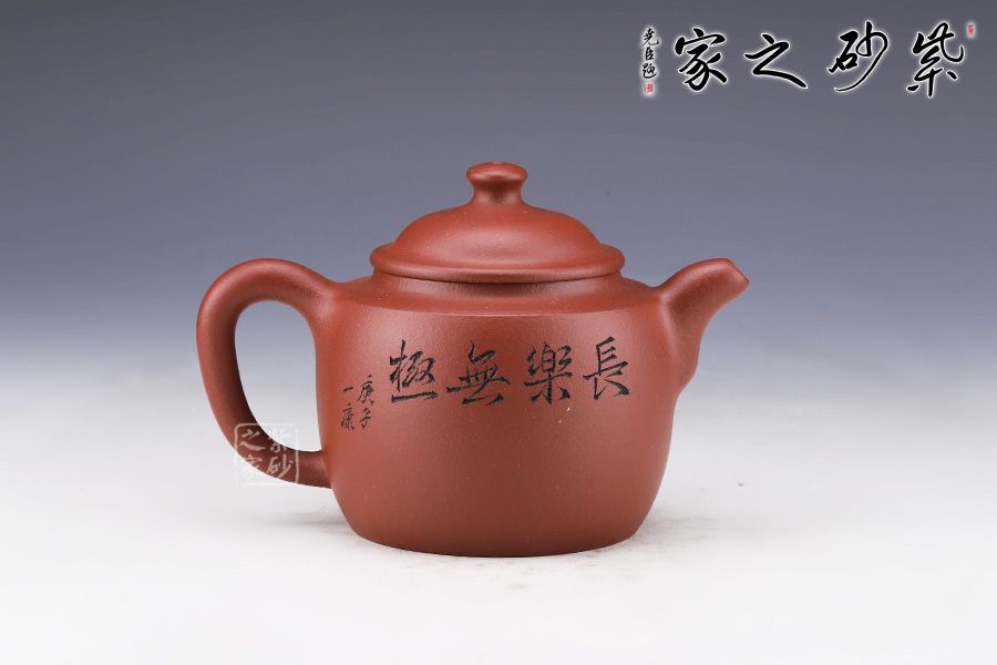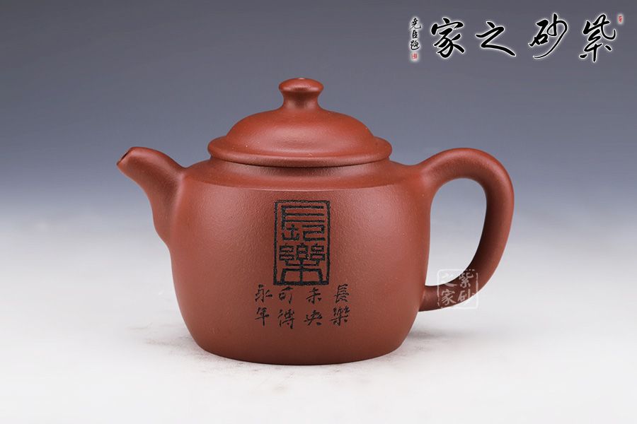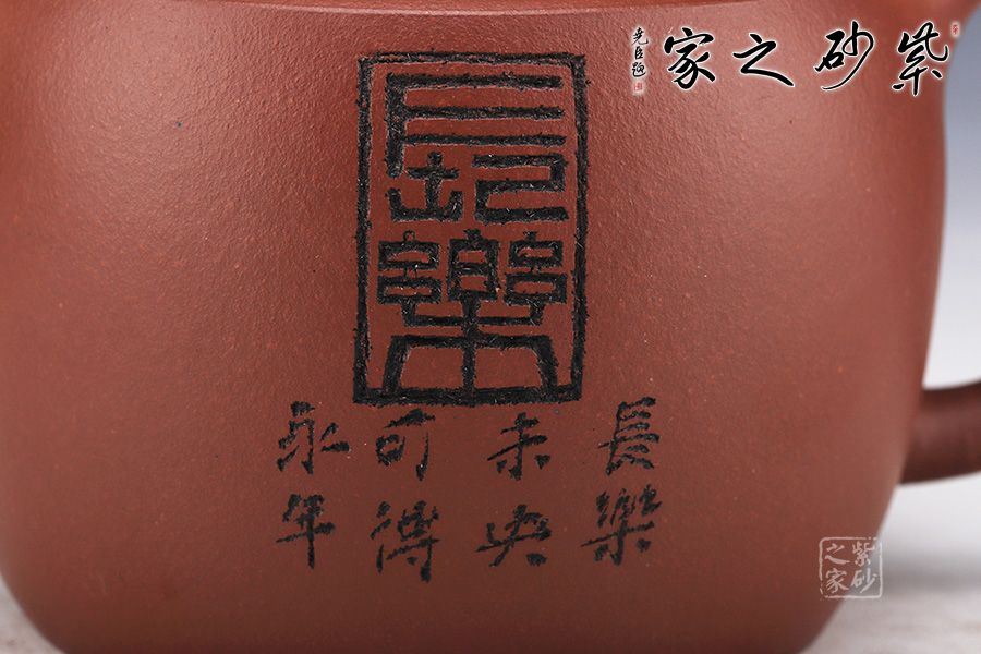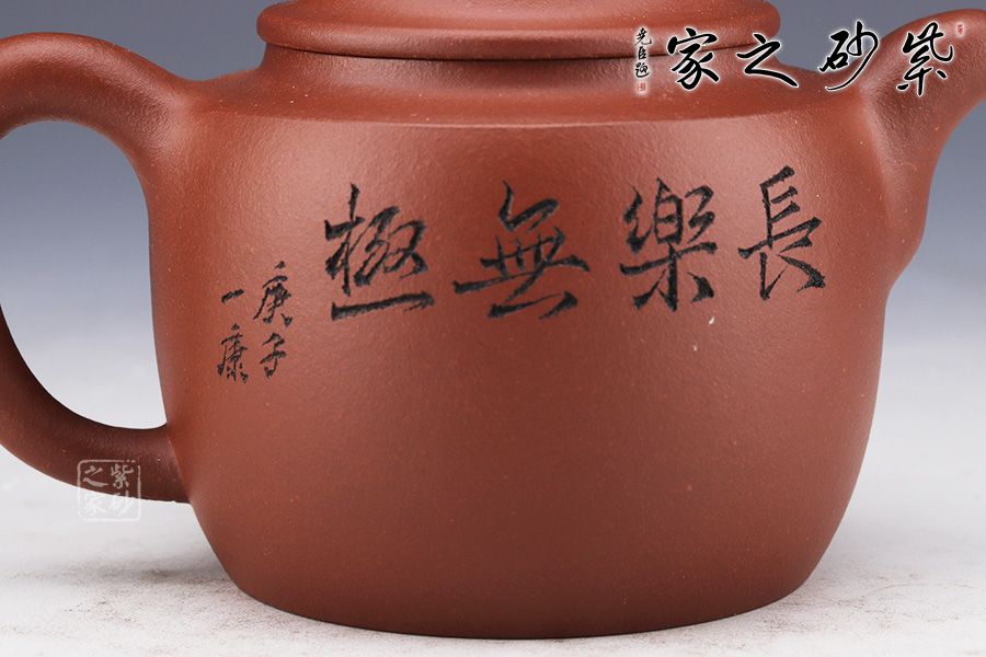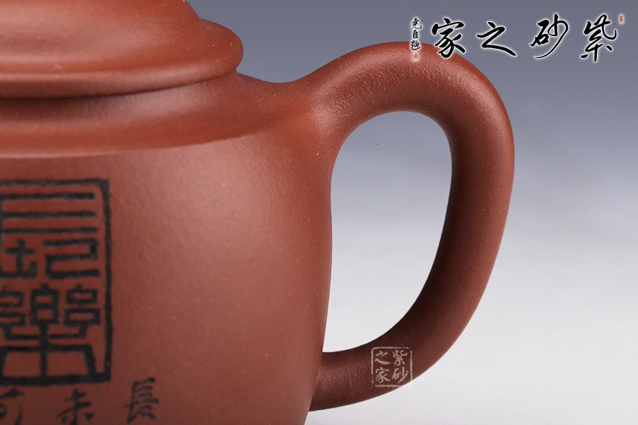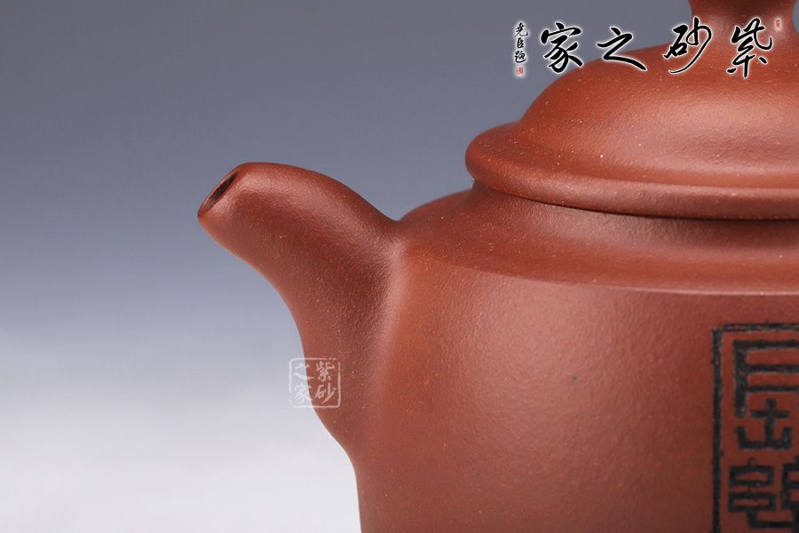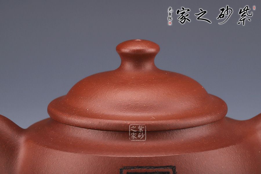 壺身略圓形,平肩襯托之下更覺壺身扁平,端莊若大家閨秀。圓潤的的子與壺身一致,應和之下韻味十足??谏w子母線精確地將壺蓋、壺口分割開來。大口蓋,大氣十足。