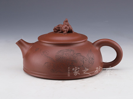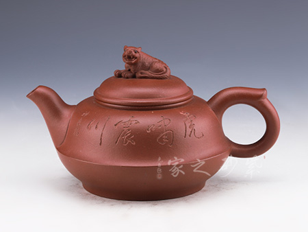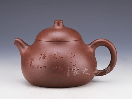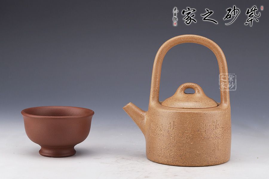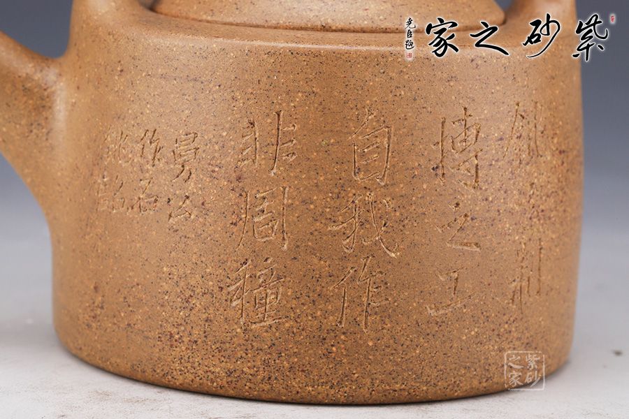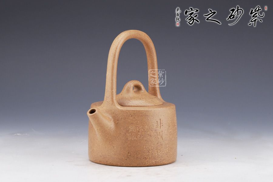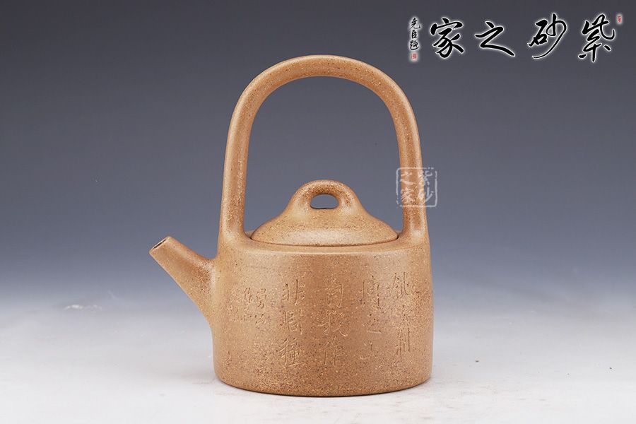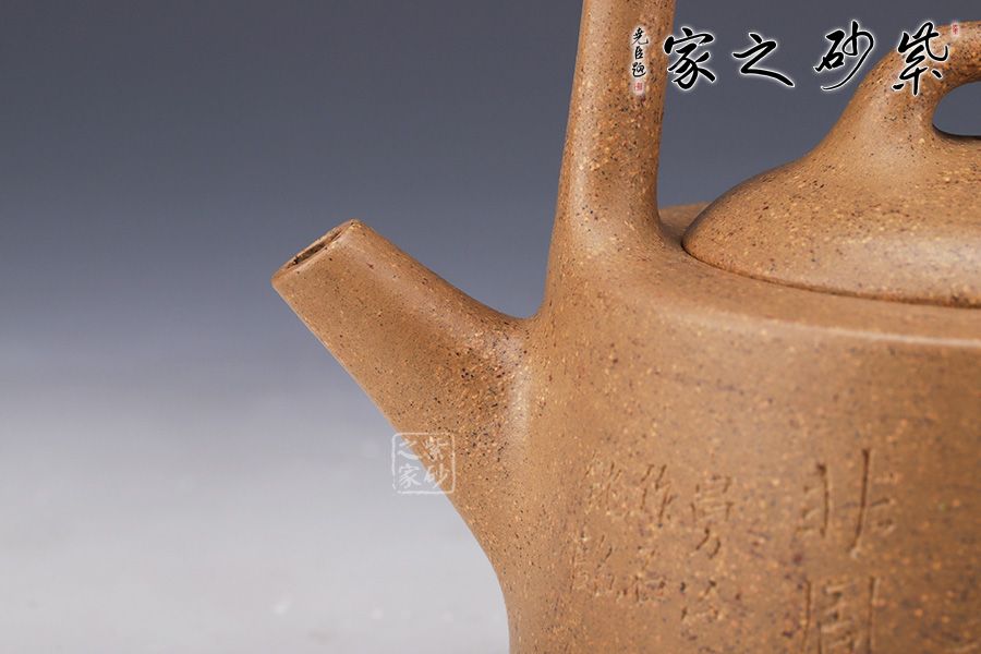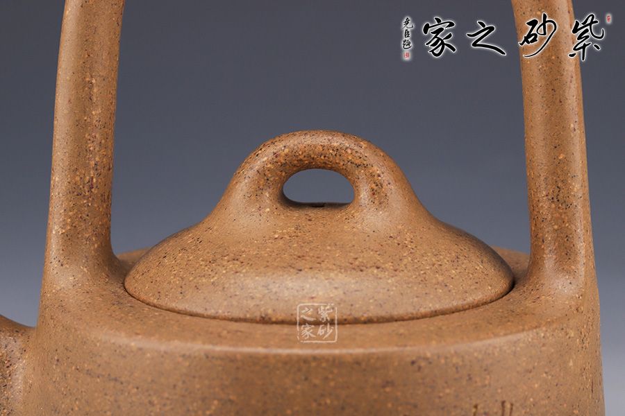 此壺名為《曼生提梁》,是曼生十八式中重要器形形制之一,也是各個藝人爭相仿效的經(jīng)典壺型之意。精選五彩段泥精制而成,黃金容量210cc。用簡潔的線條和造型打造的此壺簡練而不失精致,樸實而不失雅味。橋紐,蓋微穹,提梁硬朗而不失柔潤,與壺身的銜接舒坦自然,壺嘴直而俏,挺俏大方。