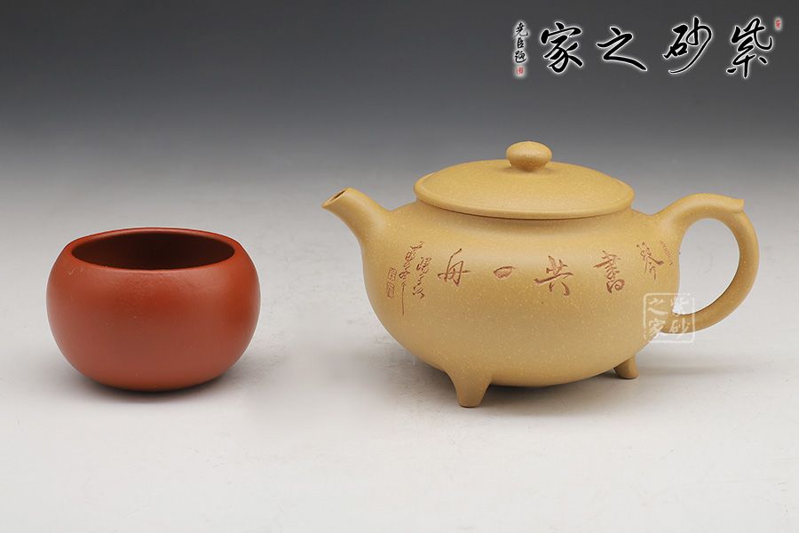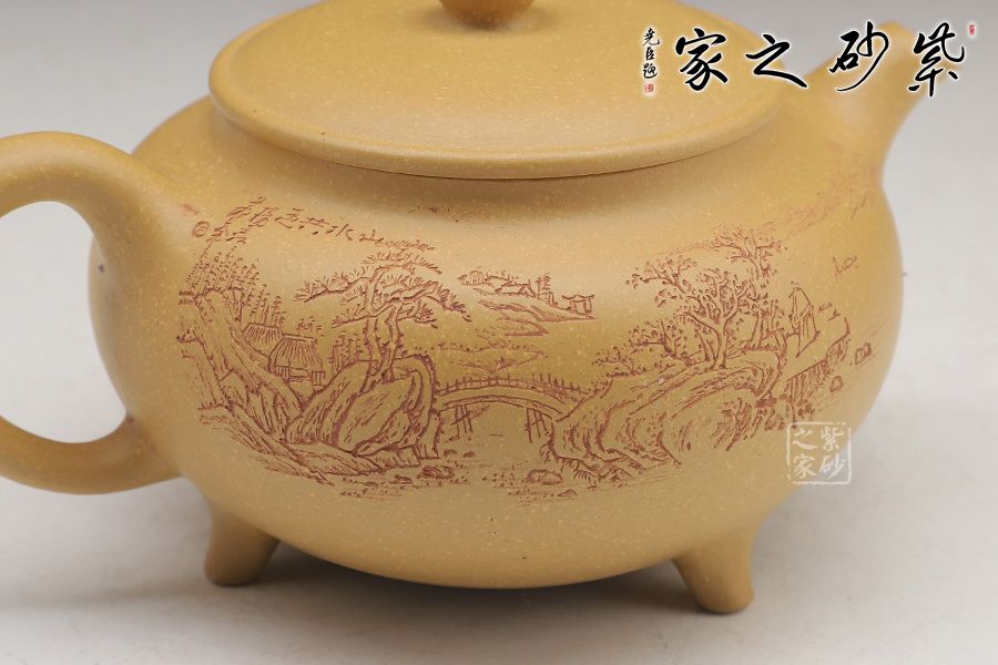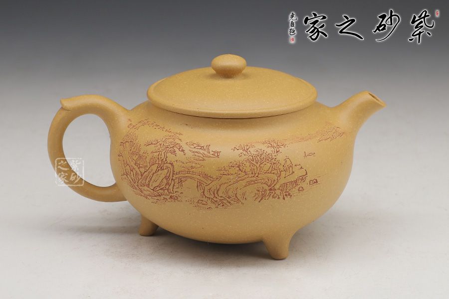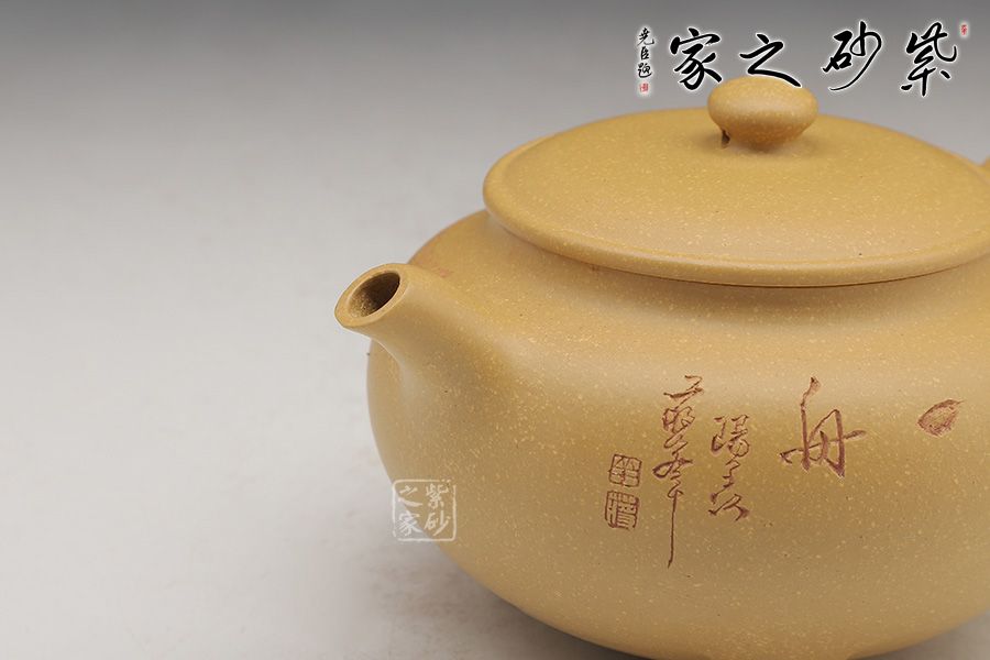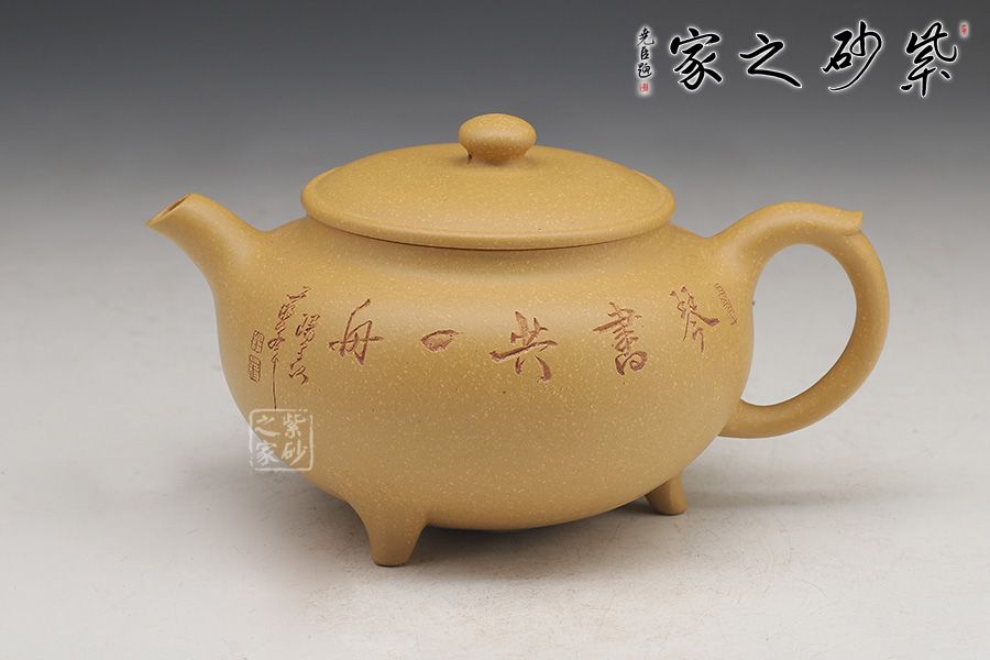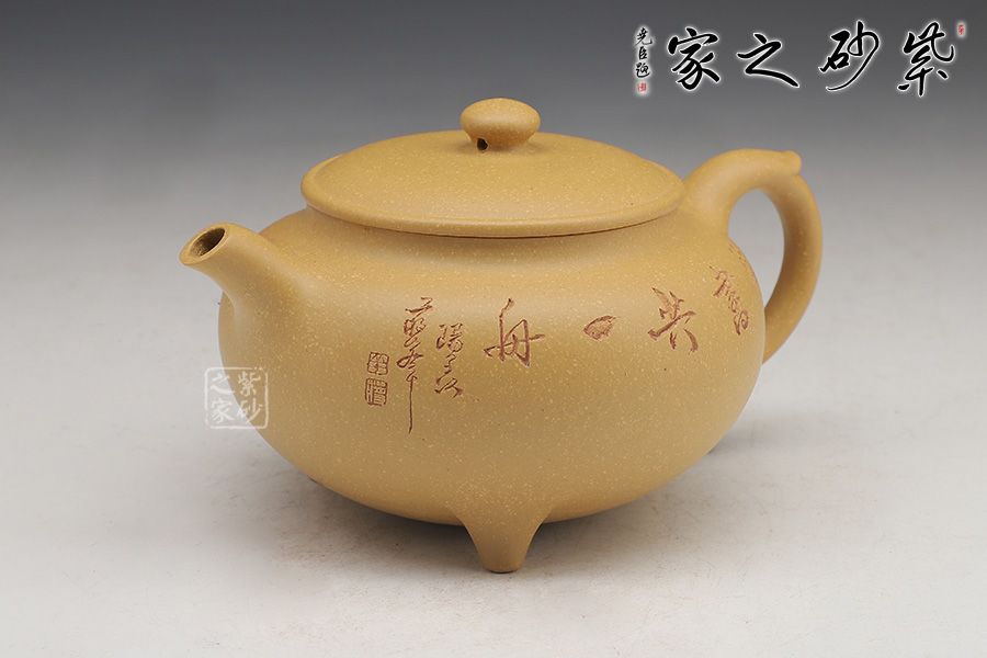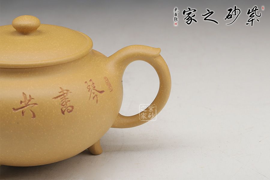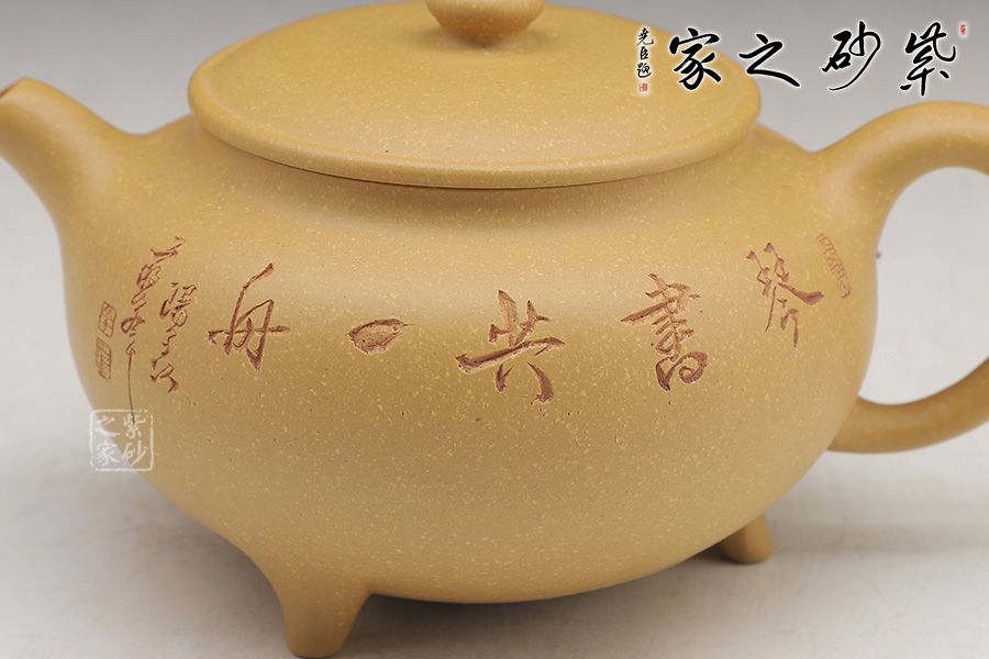 這款壺的造型簡潔,以其簡練的線條構(gòu)成渾厚的藝術(shù)空間,深厚而有神韻;壺身呈鐘鼎之形,大氣磅礴,更有招財(cái)辟邪的功用;壺底三足鼎立,高低適中,氣勢恢宏,口蓋極大,與鼎形相似。